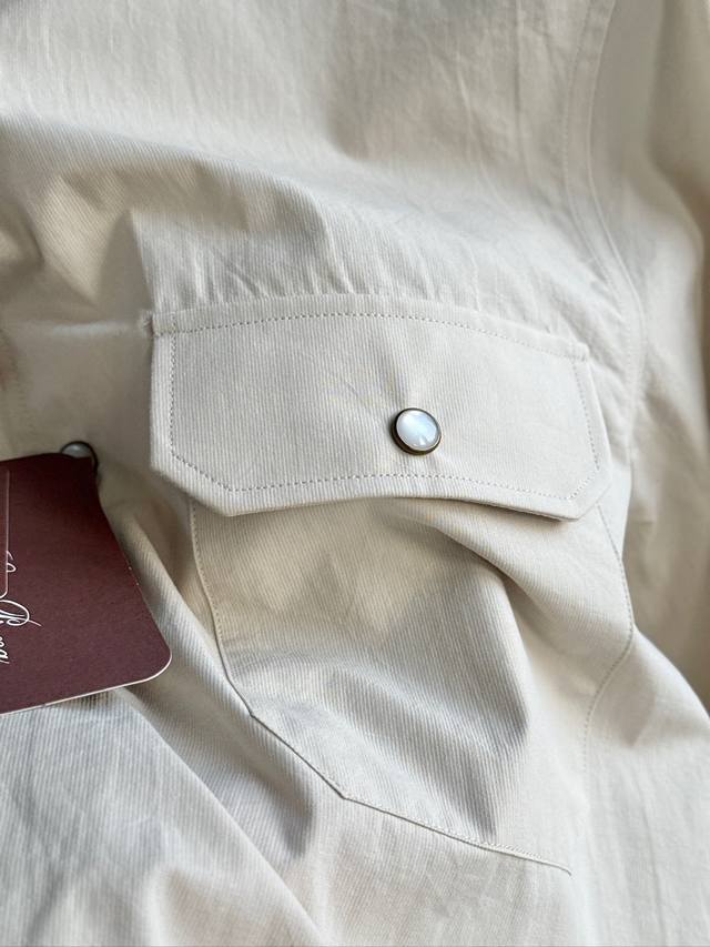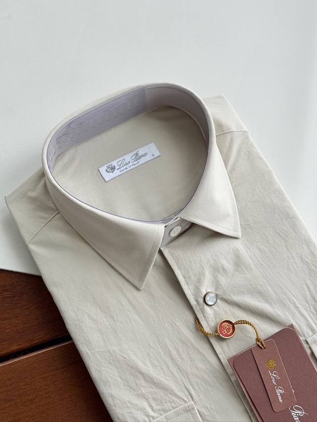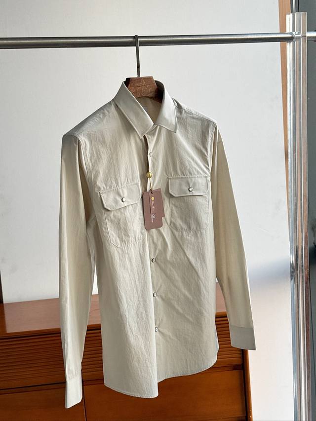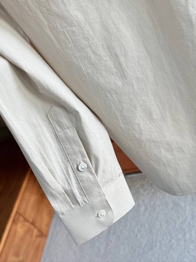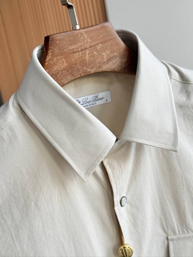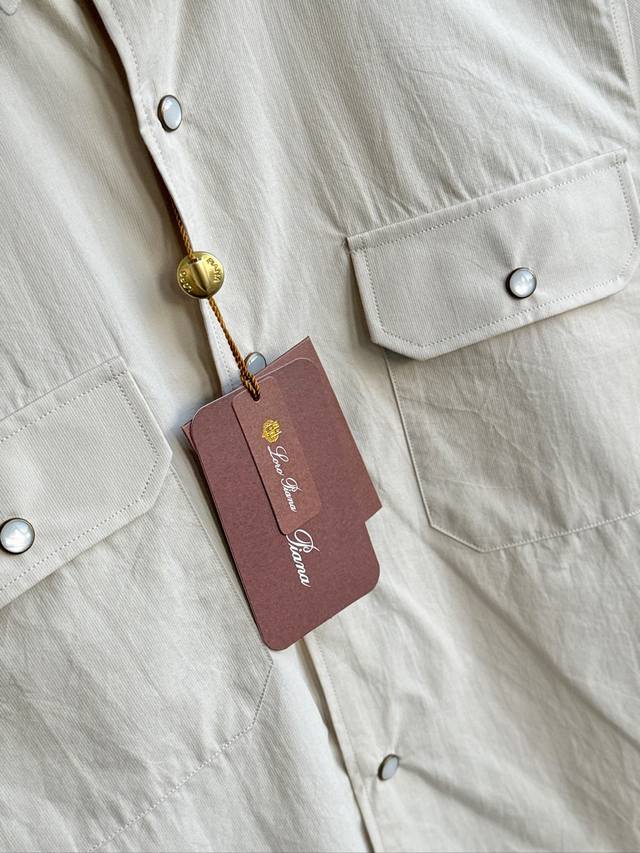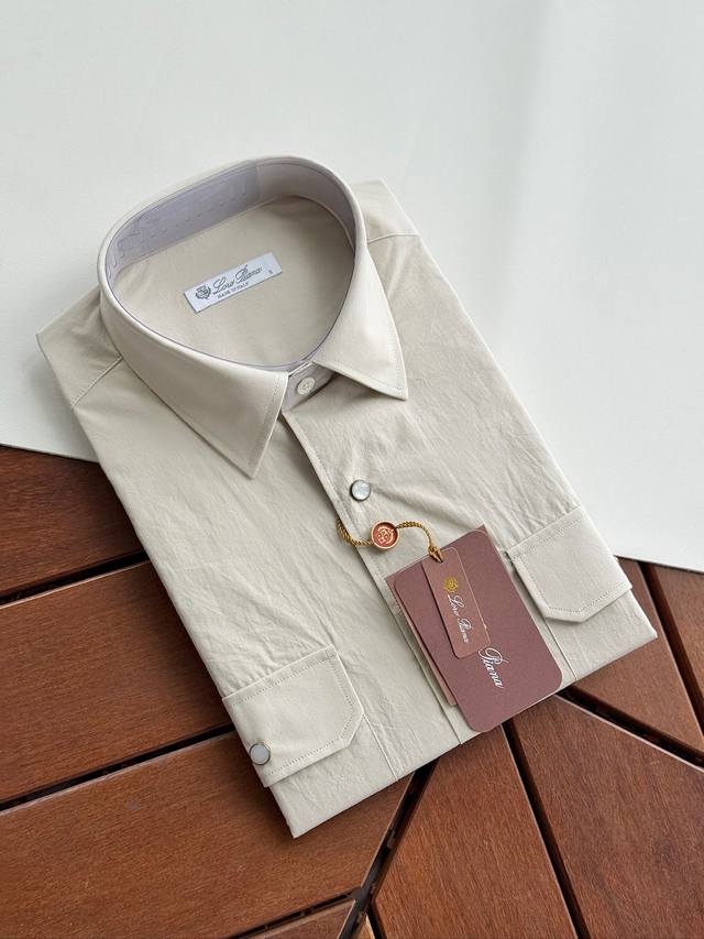 Beige details, DDD Loro piana, 2025Fw Autumn/Winter New DDD Classic Shirt, always looks good. Timeless. Lp shirts emphasize quality, fit, and workmanship, with many best-selling styles every year. DDD meticulously selects and strictly controls fabrics, resulting in this natural linen and cashmere fabric. It also has a slight stretch and is treated with liquid ammonia for wrinkle-free wear. You won't find this high-end quality elsewhere; there are many similar styles, but none match this level of fabric and workmanship. The feel and texture are first-class, comfortable against the skin, breathable and soft. The classic double-pocket flap style, paired with pearlescent white cotton and antique bronze snap buttons, makes it a great choice for wearing alone or as an inner layer. Both the overall effect and the details showcase high-end craftsmanship. Available in three colors: pearl white, beige, and black, S/ml/XL/XXL 020 DDD