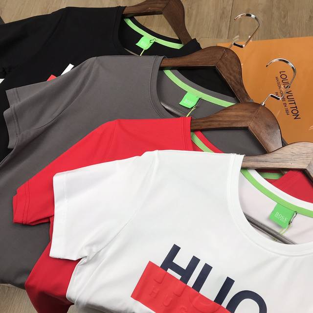 Boss exclusive high-quality men's short-sleeved T-shirt with tag, collar label, and washing label. Authentic spring and summer style. #Foreign trade order, in perfect condition. Made of high-quality cotton fabric! Lightweight, refreshing, soft, and comfortable. Classic and artistic, with a subtle background and print design that creates a lustrous, vibrant, and youthful look. Stunning alone or with a base layer. Colors: black, white, red, and dark gray. Sizes M-Xxxl