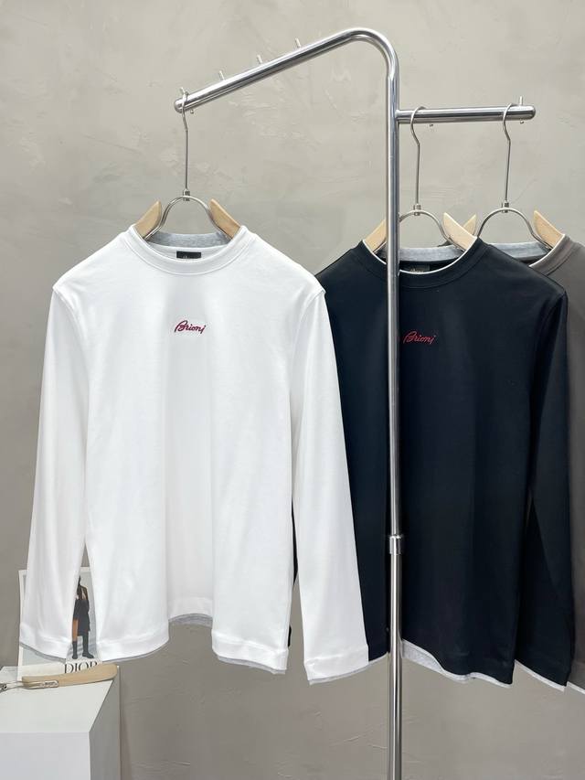 Brioni exclusive new original men's casual long-sleeved high-end customization high-end version fashionable and versatile popular imported fabrics feel super soft and delicate to wear skin-friendly and comfortable high-end boutique OEM factory p fine workmanship upper body is very good men's must-have single item three labels complete size 48-56