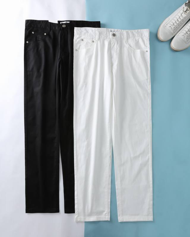 Brunello C 25Ss Spring/Summer New Arrival: Fine-spun twill cotton five-pocket casual jeans for men. Classic Pegasus metal tag business casual stretch jeans! Rarely available through trading company channels, simultaneously released with Gw! Brunello C's basic business casual five-pocket stretch jeans are now available. Both the fabric and design are outstanding, a must-have for any man's wardrobe! Made from imported 100% fine-spun twill cotton supplied by DDD, the fabric is silky smooth and refreshing, super lightweight, and extremely breathable and moisture-wicking. It's incredibly cool and comfortable to wear in summer, without feeling stuffy. Such high-end fabric cannot be compared to the low-quality fabrics on the market! The classic Pegasus metal tag on the back pocket echoes the brand tag on the front pocket, complemented by a retro brown leather patch at the waist, making the classic elements instantly recognizable! This classic five-pocket, slim-fit design is a versatile and easy-to-match style, making it a powerful tool for creating a fashionable look. It will definitely elevate your style and sophistication significantly. Grab it now! Available in black and white! Item No.: 3722-Ld Sizes: 29-40 (35 available, 37 not available) 29: Waist 75cm, Hips 102cm, Crotch 25cm, Length 105cm 30: Waist 78cm, Hips 104cm, Crotch 25cm, Length 106cm 31: Waist 81cm, Hips 106cm, Crotch 26cm, Length 106cm 32: Waist 84cm, Hips 108cm, Crotch 26cm, Length 107cm 33: Waist 87cm, Hips 110cm, Crotch 27cm, Length 107cm 34: Waist 90cm, Hips 112cm, Crotch 27cm, Length 108cm 35: Waist 93cm, Hips 114cm, Crotch 28cm, Length 108cm 36: Waist 96cm, Hips 116cm Straight crotch 28, pant length 109 DDD; 38: Waist 99, Hips 118; Straight crotch 29, pant length 109 DDD; 40: Waist 102, Hips 120, Straight crotch 29, pant length 110 DDD