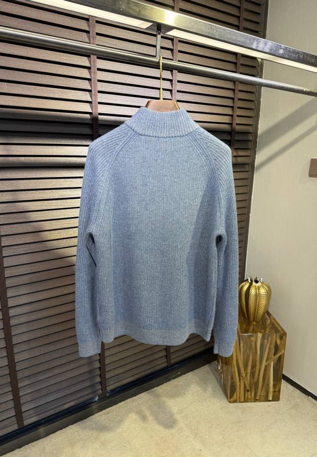Brunello Cucinell&Bc&Fw's new 2025 turtleneck zippered sweater is the latest addition to your wardrobe. Made from a custom-made Merino wool and cashmere blend, the knitting technique creates an extremely fine density, resulting in a fabric with a firm, delicate, and soft feel, comparable to the finest cashmere. This classic and versatile style features the brand's logo on the chest for instant recognition and a stand-up collar. The design is versatile and suitable for any outfit.