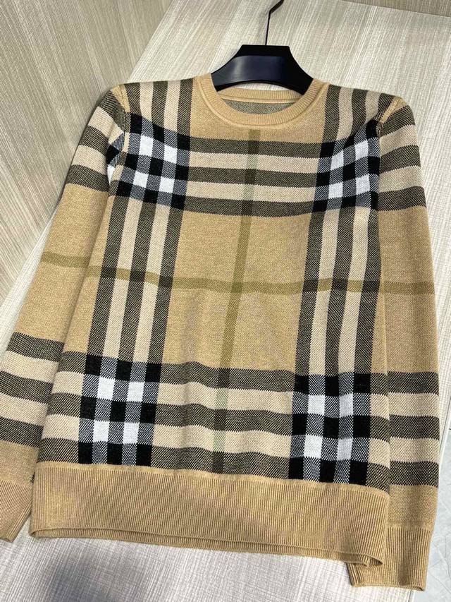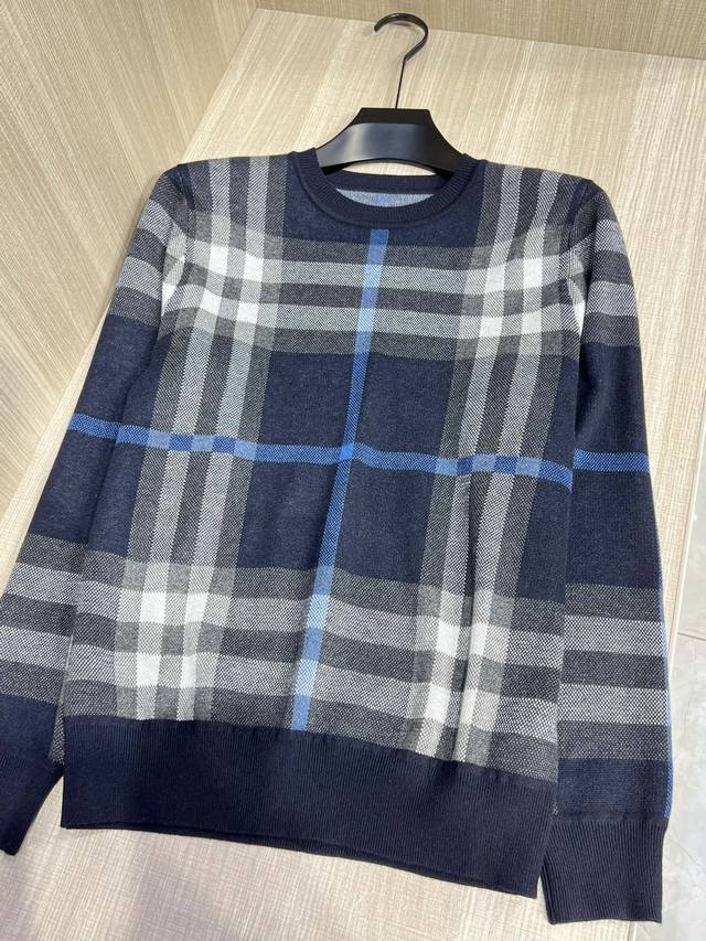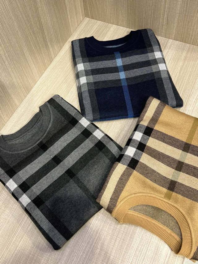 B's latest autumn/winter classic large plaid men's crewneck sweater is a highly