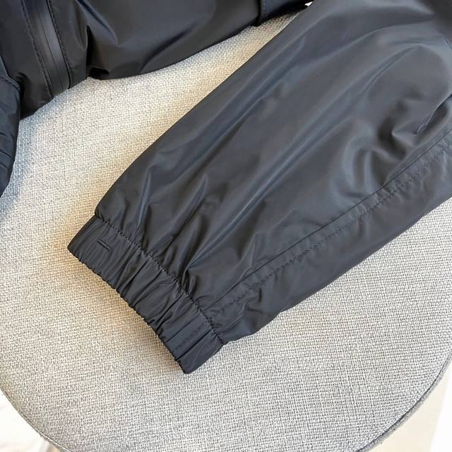 Bur 25S military-style hooded jacket, made of olive green matte nylon, with a stand-up collar and hood and a black zipper. The dark-patterned Galloping Horse logo subtly highlights its pedigree. Beveled stitching lines create a three-dimensional silhouette, while elastic cuffs and hem enhance the functional feel. A cool military style meets Italian tailoring, making this the perfect choice for urban functional luxury. Matte nylon and three-dimensional tailoring, with the dark-patterned Galloping Horse logo as the finishing touch. The beveled stitching design and elastic hem create a perfect fusion of military style and Italian luxury. 48-56 Model is 173cm tall, 143kg, and wears size 50 Dm