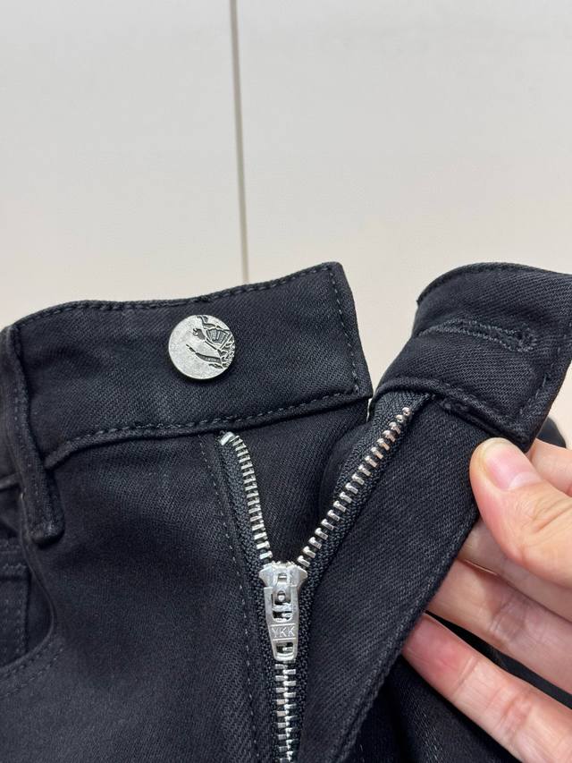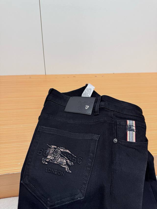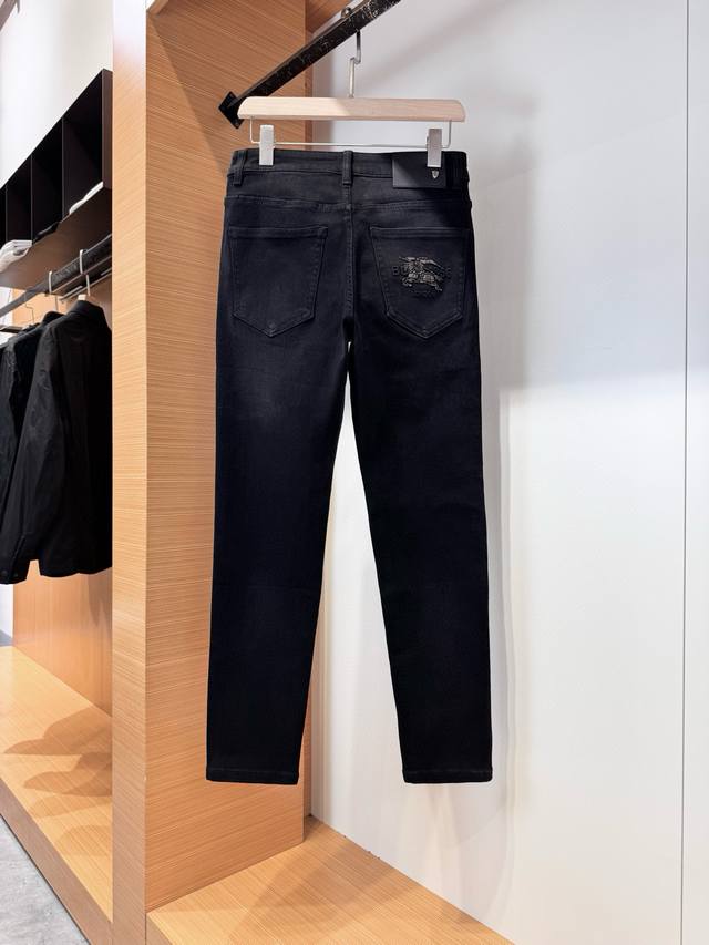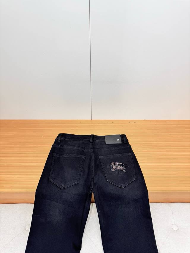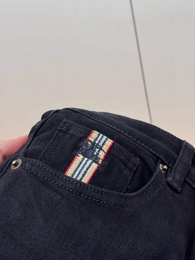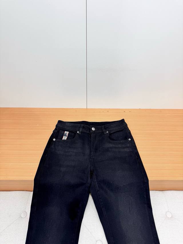 Bur Burberry's Autumn 2025 Black Bull Casual Jeans! Crafted from garment-dyed stretch cotton gabardine, these jeans feature a sheer black hollow silk fabric that's smooth, soft, and lustrous, creating a fresh and comfortable look. The brand's metal hardware at the back waist adds a touch of sophistication and makes them instantly recognizable. The five-pocket, comfortable stretch cotton design and taped cuffs elongate the legs, perfectly matching the clean silhouettes of the brand's City collection. Even basic combinations can add a fresh touch to everyday wear, making them suitable for almost anyone. Sizes: 29-36,