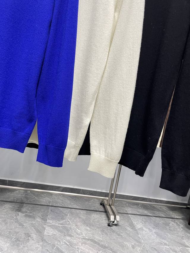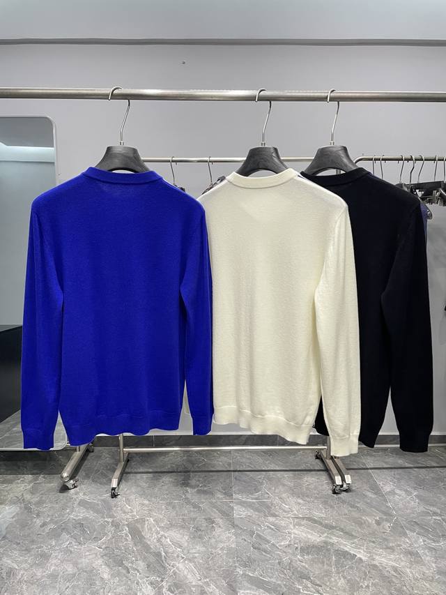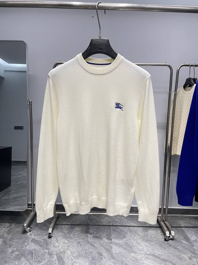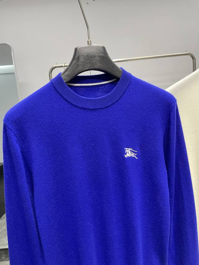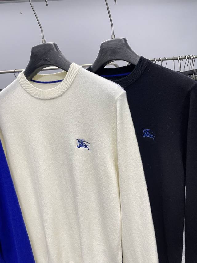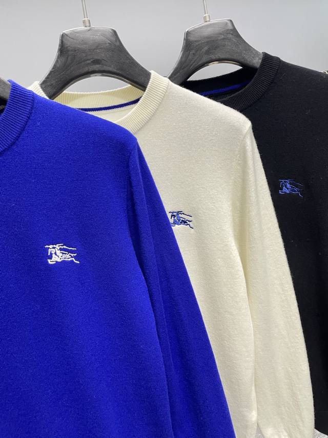 Bur2025 Autumn/Winter New Arrival: Horse Logo Embroidered Wool and Cashmere Knit Crew Neck Sweater! An undeniably hot item, the classic horse logo embroidery on the chest perfectly embodies British high-end luxury, making it another stunning piece! Made with premium 50% wool, 40% cashmere, and 10% polyester blend yarn using German-imported Sotl knitting machines, it boasts a soft and supple feel, offering a more structured and breathable look compared to ordinary knit fabrics. A must-have for autumn and winter! The knight returns, with timeless classic elements infused into Burberry's iconic equestrian knight logo, presented through embroidery. The horse's embossed form is full and three-dimensional, like a galloping steed ready to break free! Stylishly and powerfully showcasing the brand's culture and identity! Highly recognizable, this versatile piece ensures you exude style wherever you go! DDD Colors: Blue, White, Black DDD Sizes: M-3XL DDD Size Reference: DDD M: Shoulder width 43cm, Chest 100cm, Sleeve length 64cm, Length 67cm DDD L: Shoulder width 44cm, Chest 104cm, Sleeve length 65cm, Length 68cm DDD XL: Shoulder width 45cm, Chest 108cm, Sleeve length 66cm, Length 69cm DDD 2XL: Shoulder width 46cm, Chest 112cm, Sleeve length 67cm, Length 70cm DDD 3XL: Shoulder width 47cm, Chest 116cm, Sleeve length 68cm, Length 71cm 020 DDD