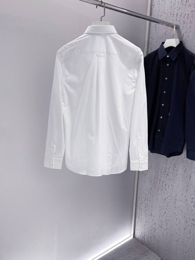 bur~Men's long-sleeved poplin cotton shirt with contrasting logo embroidery.