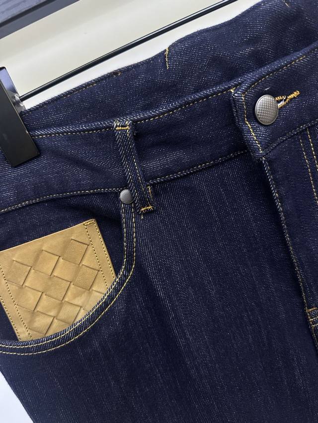 Bv Blue Ox 25Ss new autumn and winter straight version washed blue counter synchronization environmentally friendly fabric does not fade custom fetal cow frosted leather woven leather patch and back pocket yellow line large V combination perfect match color: dark blue number 30.31.32.33.34.35.36.38