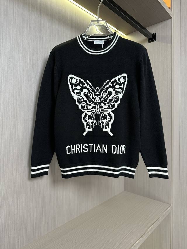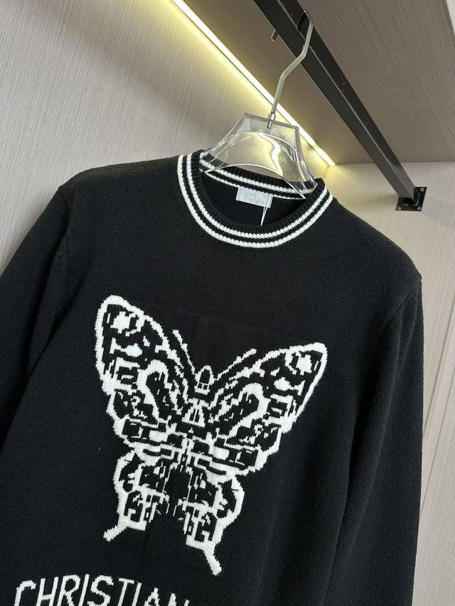 Cd Dijia 2025Fw autumn and winter latest series crew neck sweater, in full condition! All-over jacquard logo butterfly pattern, line color matching trendy fashion single product soft feel, non-snap