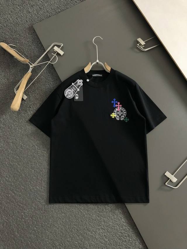 Ch* Authentic Size S-XL Ddd 2026 Spring/Summer Short-Sleeve T-Shirt. Featuring intricate Sanskrit embroidery in vibrant colors, this top cleverly incorporates the latest fashion trends, breaking away from the monotony of traditional short-sleeve shirts and showcasing individuality and a free-spirited style. The three-dimensional cut flatters the figure, with a clean and stylish design that effortlessly elongates the legs, creating a relaxed and carefree look. Made from high-quality, comfortable, and warm fabric, it's suitable for everyday wear or light outdoor activities. The triangular jacquard detail on the back adds a touch of sophistication. Whether paired with a casual T-shirt and jeans or layered for a mixed-and-matched look, it's easy to style and an indispensable fashion item for the autumn/winter transition. Ddd Available in Black, White, and Blue DDD
