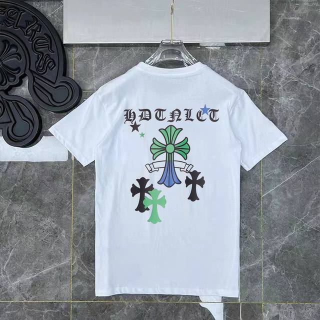 New summer Ch print cross high-end short-sleeved T-shirt for couples. Made of 250g double yarn pure cotton fabric. High weight. 1:1 pattern. Available in black and white (S-XL) on the official website.
