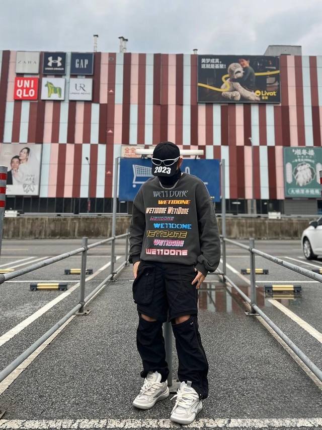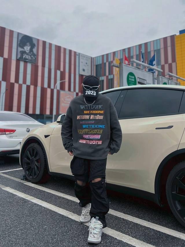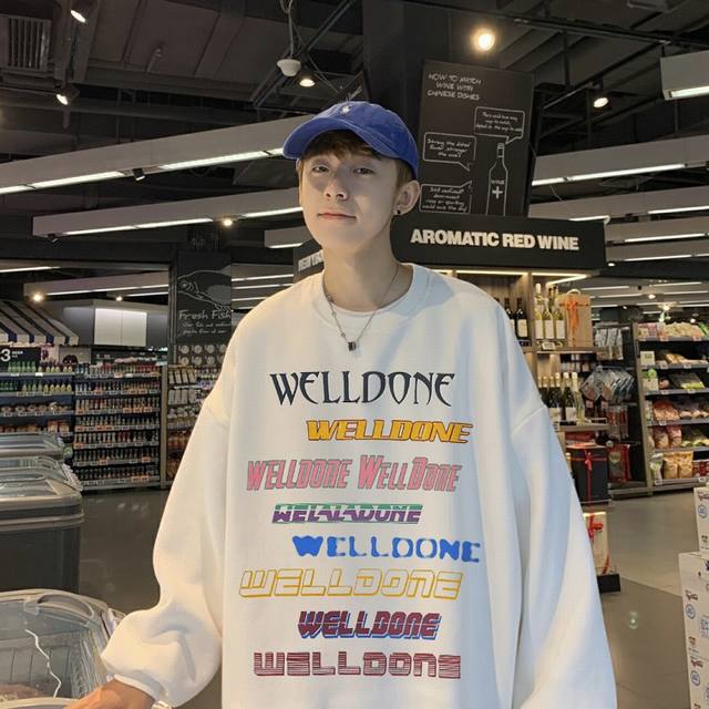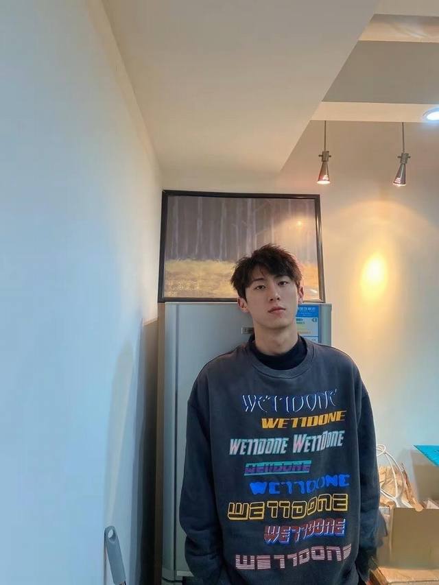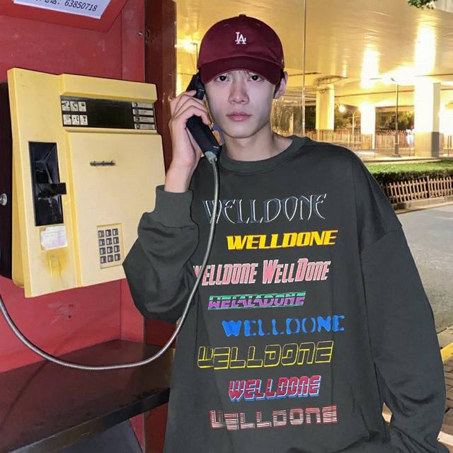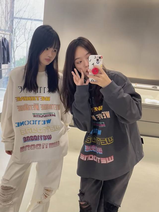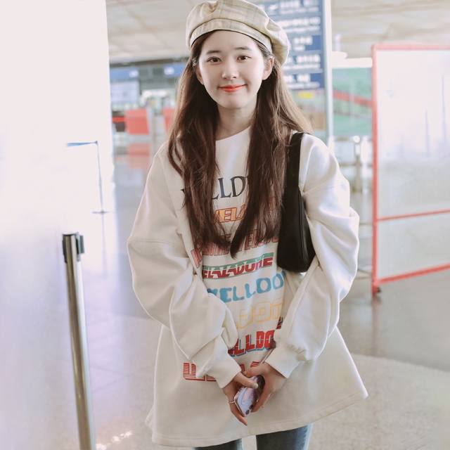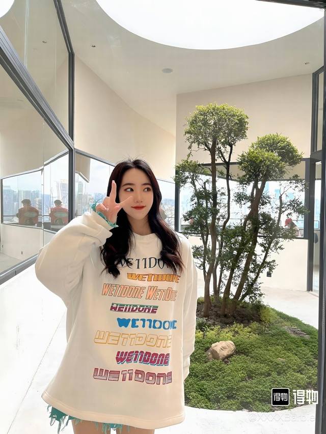 Zhao Lusi's top is We11Done's colorful neon letter print round neck plus velvet sweatshirt