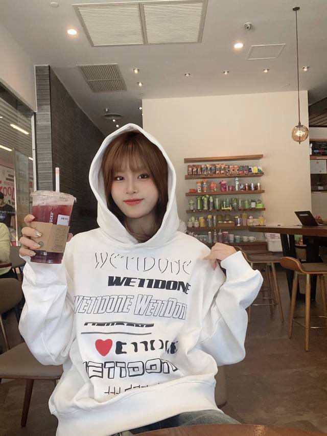 We11Done official website autumn and winter new love foam three-dimensional printing letter short hooded sweatshirt