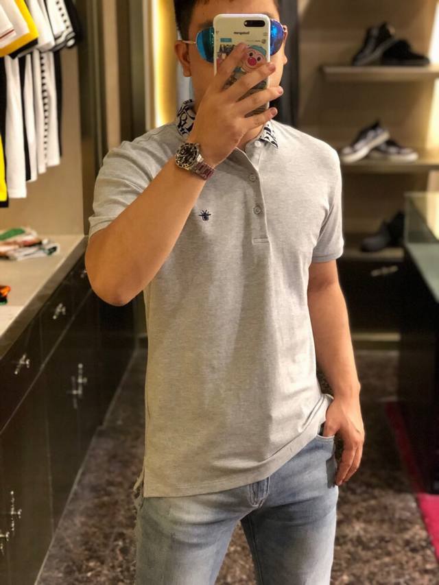Di** Dior, the latest spring/summer collection, available simultaneously at both the official Dior and Dior counters. This bee-collar polo shirt is made with a custom-made, high-count Piqu