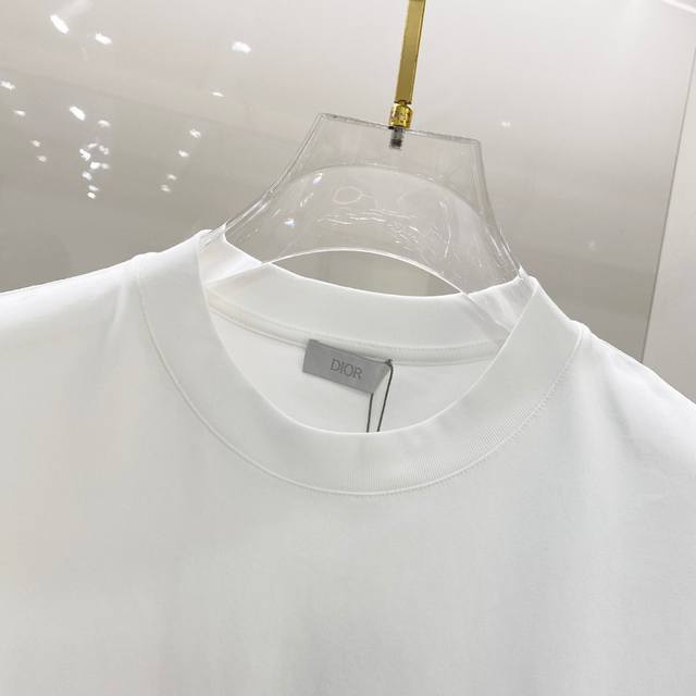 Dio* 2025 Spring/Summer new cotton round neck short-sleeved T-shirt with heavy chest embroidery. Custom-made top-grade mercerized cotton fabric. Standard fit