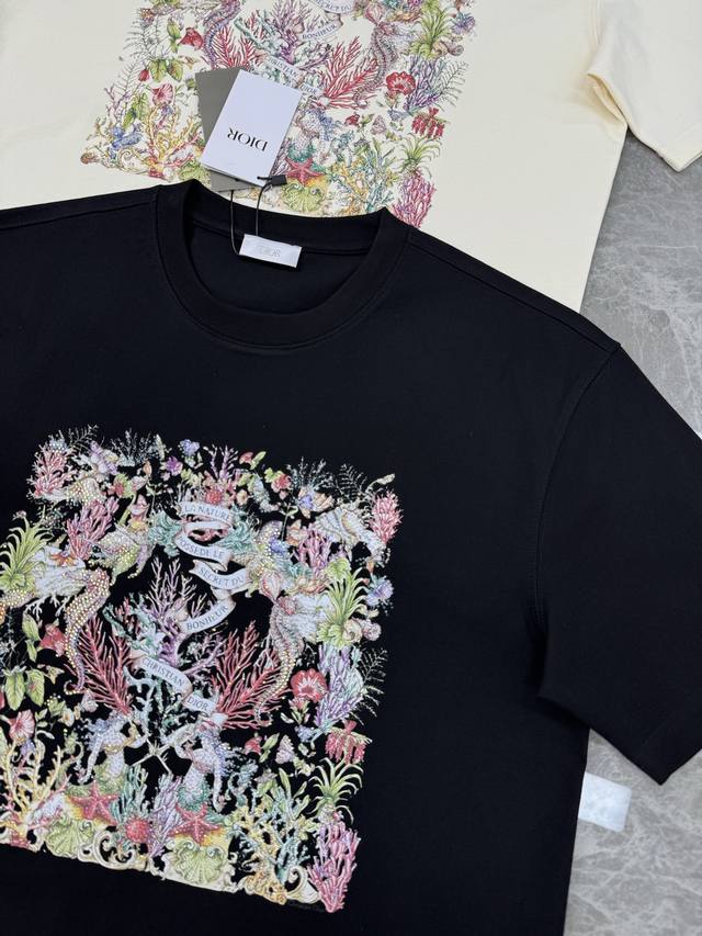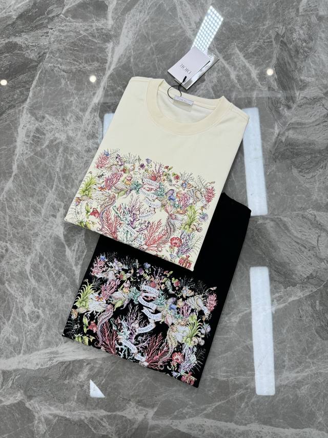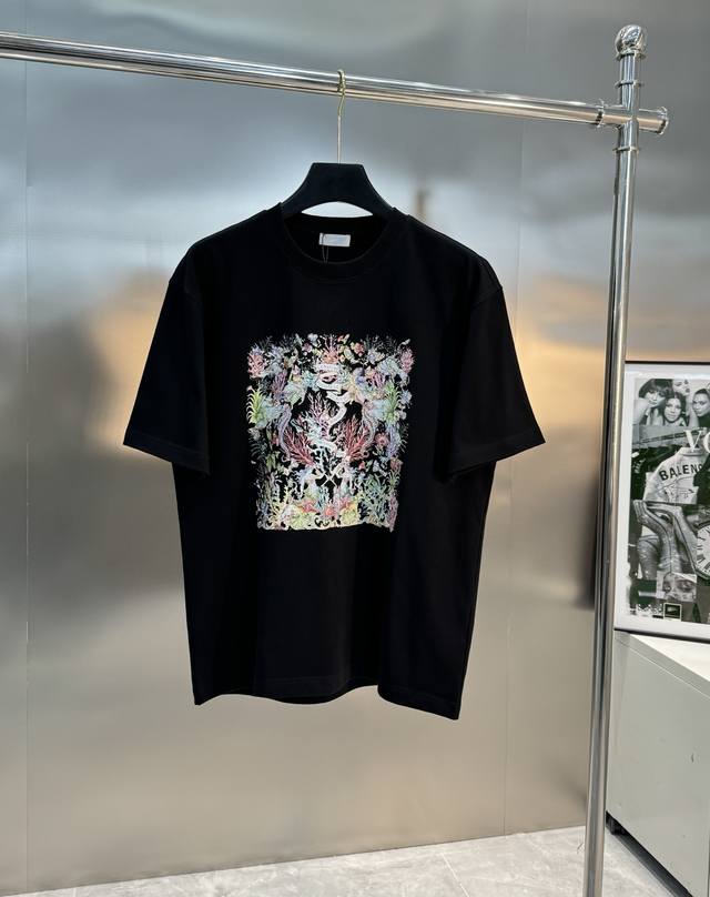 Dio*R Dior 25S new couple round neck T-shirt! New 3D bursting three-dimensional silicone print on the chest. 300G selected 100% cotton texture. The cotton is full and elastic. Adhering to the pursuit of details, the pattern is also brand new! Full, clear and textured. The fabric is close to the body, comfortable and breathable! Whether it is worn alone or as a base, it is a must-have item! Don't miss it. Color: black. Beige. Size: S-3Xl slightly expanded version! 175 145 catties recommended L