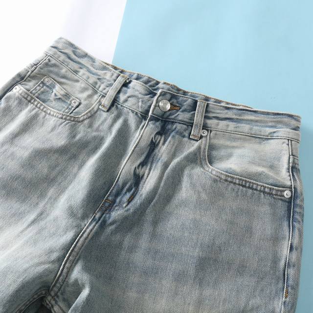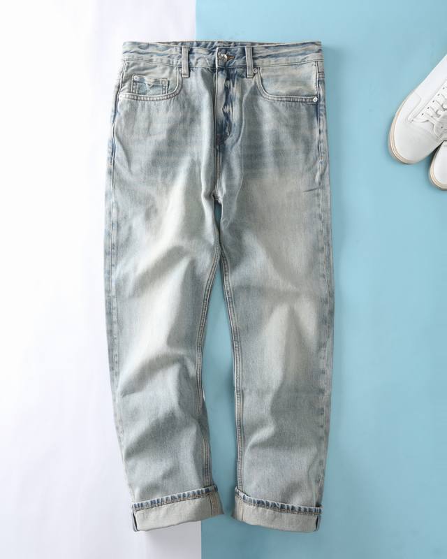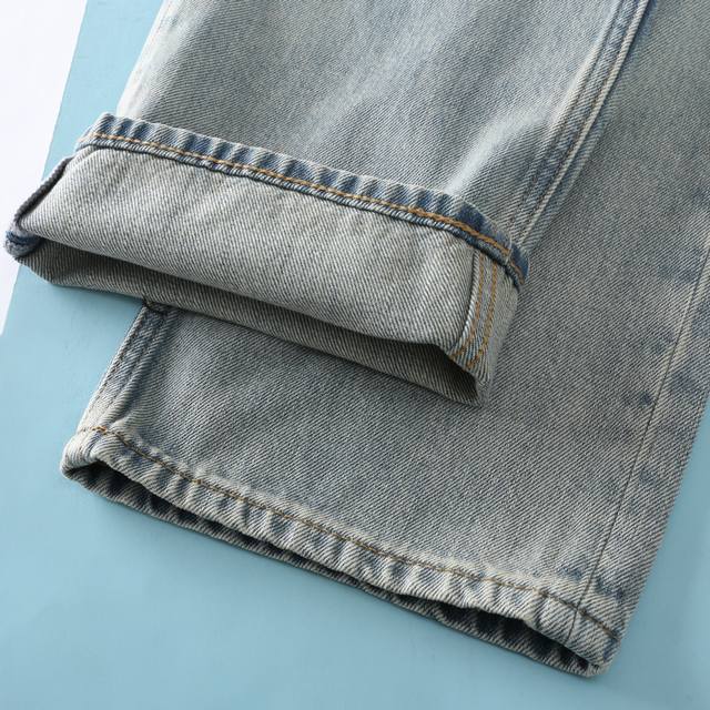 Selected high-end imported denim fabrics for customers, specially selected pure 13Oz ounces of denim fabrics from Okayama, Japan, heavy environmentally friendly plant enzyme washing process, the texture has a light retro color, quite beautiful, the fabric is soft and delicate after washing, but the bones are very strong, and slightly elastic, providing an excellent comfort experience, without any process elements damage, retaining the purest denim color! Perfectly inheriting the elements of the new season, the classic metal leather label on the back pocket of the pants highlights the brand characteristics, combined with elegant brand elements, highlighting the quality of details, equipped with the iconic buttons of the season, adding a lot of visual points, fashionable and modern, very exquisite, highlighting the brand identity in the details and strongly reflecting the overall luxury and high-end feeling! The straight-leg trouser leg version is cut, with its unique tailoring and slightly spread flared trouser legs, full of retro atmosphere, suitable for all occasions! 32: Waist 84 Hips 108 Straight crotch 31 Pants Length 106
