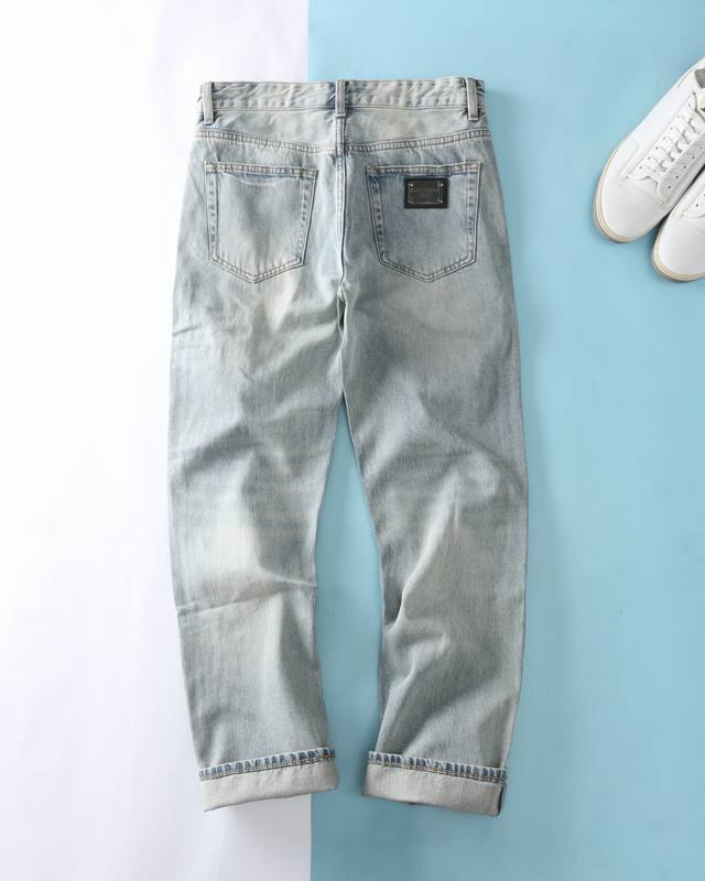 Dol Du*Banna 25Ss Spring and Summer New Fashion Retro Washed Nostalgic Jeans, Men's Back Waist Old Flower Nameplate Decorated Wide Straight Casual Denim Pants! Seldom available through trading company channels, and will be released simultaneously on Gw! A predictable hot-selling item, a pair of jeans dominated by fabrics and craftsmanship, abandoning the previous style and tone, taking a minimalist route, very pure and neat and clean, with no restrictions on the level of wearability, it can be business or casual and fashionable, both solemn and humorous, with a full aura!