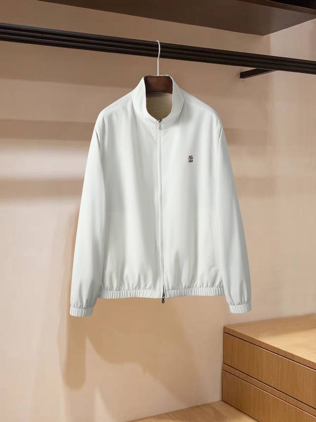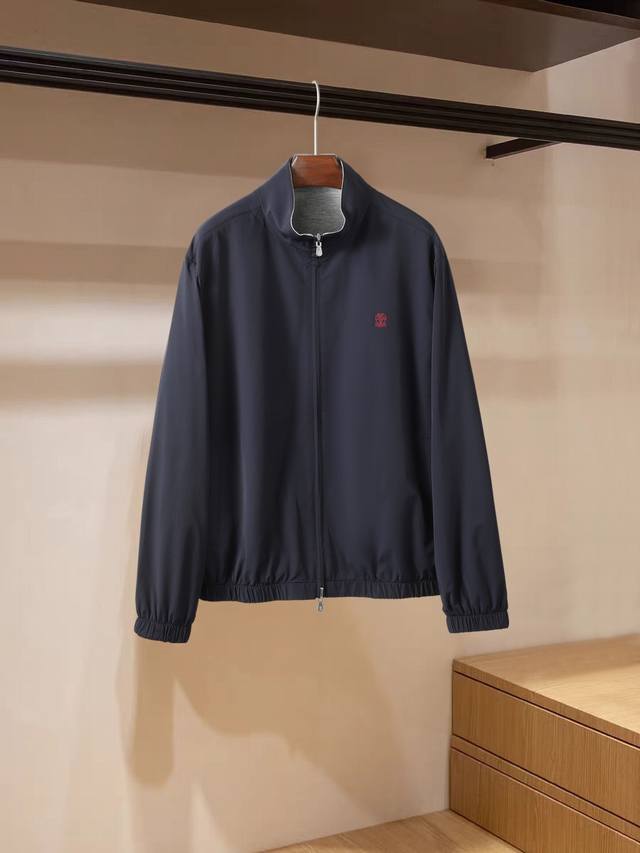 Domestic first-line OEM production Brunelo Cucinelli men's logo embroidered custom zipper counter synchronized cashmere double-sided jacket