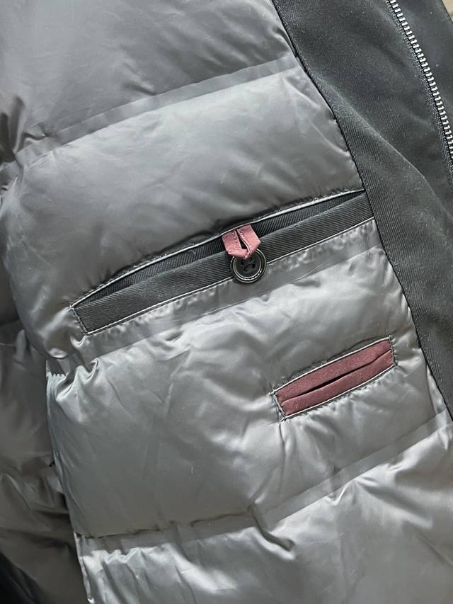 . Lined with 100g-90g white duck down, this lightweight and stylish jacket is designed to be effortlessly stylish without bulk. This quintessential Italian fashion piece features meticulously selected fabrics and craftsmanship, perfectly embodying the brand's century-old aesthetic. This jacket is understated yet luxurious, elegant, and refined. Every detail showcases the brand's premium aesthetic. The jacket perfectly embodies Italian minimalism, sophistication, and outdoor functionality, creating a sophisticated yet playful look. This treasured piece of functional gear combines fashion and design, creating a unique look. The modified aviator design is both classic and fashionable, a retro, youthful, and stylish statement.