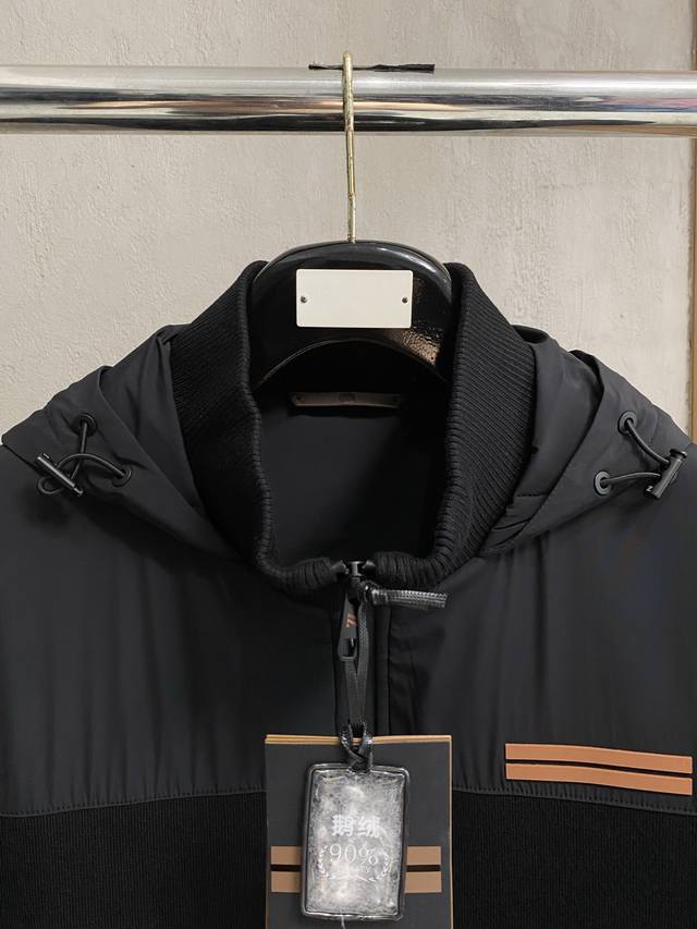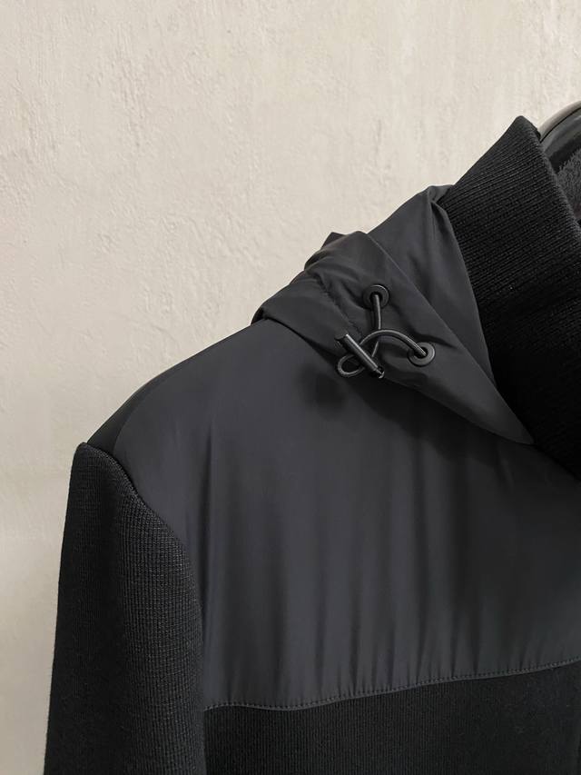 Down Jacket - Zegna Autumn/Winter 25 Fashion Small Hooded Knit Sleeve Lightweight Down Jacket