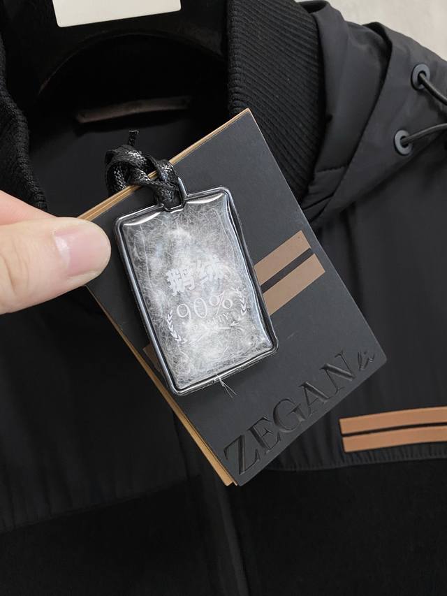 . Lined with 80g-90g white duck down, this lightweight and stylish jacket is designed to be effortlessly stylish without bulk. It features two 3D brown stripes on the left front. This quintessential Italian fashion piece is sourced from trading companies and features meticulous fabric selection and craftsmanship, perfectly embodying the Z family aesthetic. It offers understated luxury, elegance, and sophistication. Every detail demonstrates the brand's premium aesthetic. This jacket perfectly embodies Italian minimalism, sophistication, and outdoor functionality. It's both formal and playful, and boasts a stylish silhouette. This treasured piece of functional gear combines fashion and design, creating a unique look. Its modified aviator silhouette and classic stand-up collar create a retro, youthful, and stylish look.