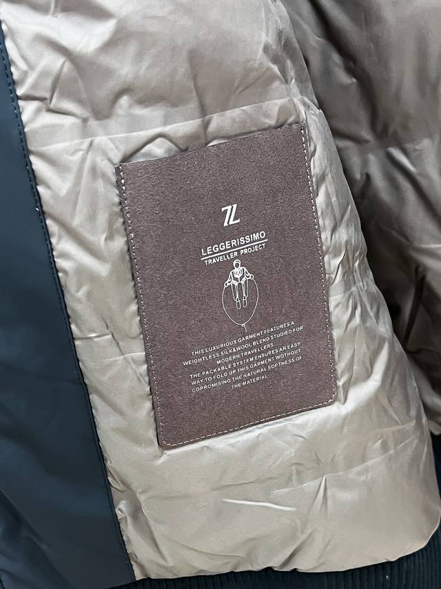 . Lined with 80g-90g white duck down, this lightweight and stylish jacket is designed to be effortlessly stylish without bulk. It features two 3D brown stripes on the left front. This quintessential Italian fashion piece is sourced from trading companies and features meticulous fabric selection and craftsmanship, perfectly embodying the Z family aesthetic. It offers understated luxury, elegance, and sophistication. Every detail showcases the brand's premium aesthetic. This jacket perfectly embodies Italian minimalism, sophistication, and outdoor functionality. It's both formal and playful, and boasts a stylish silhouette. This treasured piece of functional gear combines fashion and design, creating a unique look. Its modified aviator silhouette and classic stand-up collar create a retro, youthful, and stylish look.