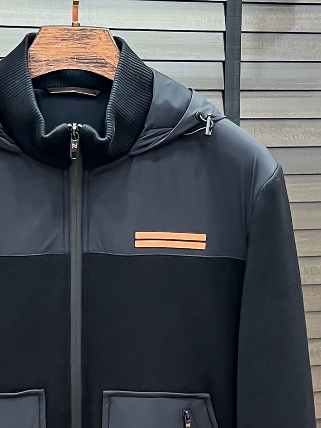 Down Jacket - Zegna Autumn/Winter 25 Fashion Small Hooded Knit Sleeve Lightweight Down Jacket