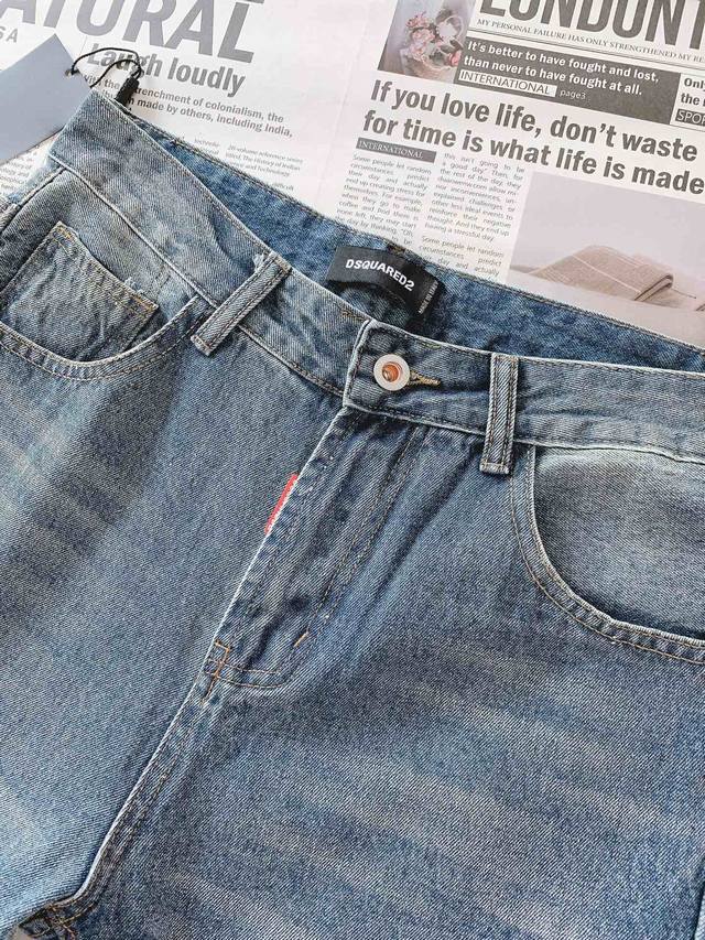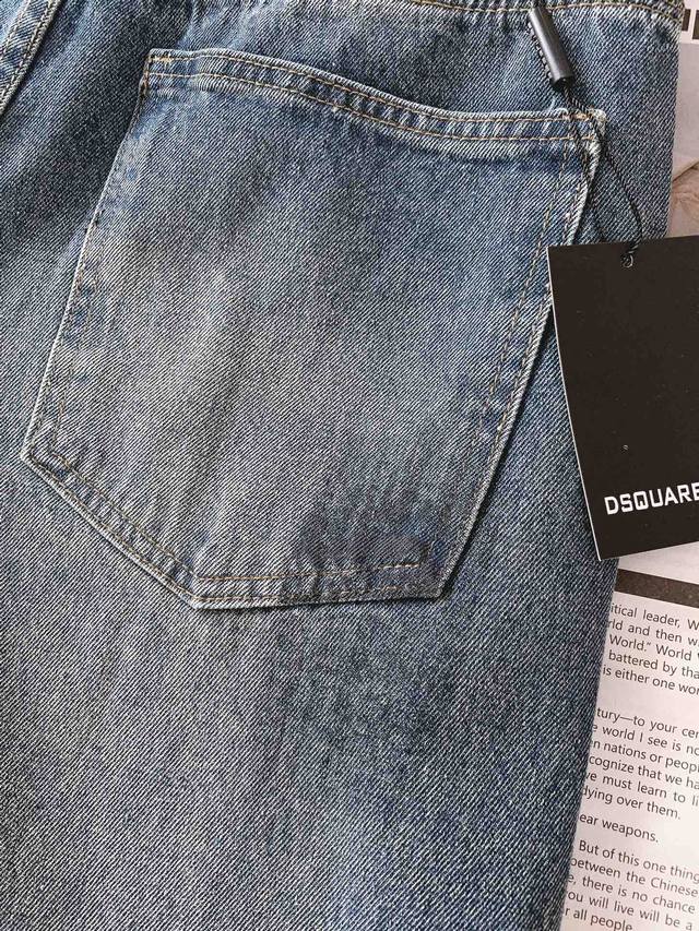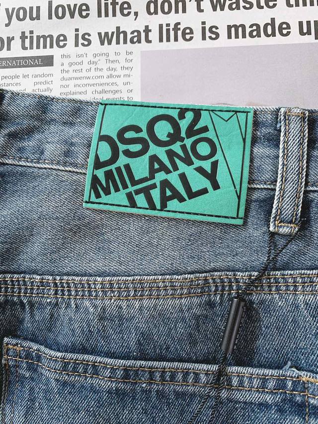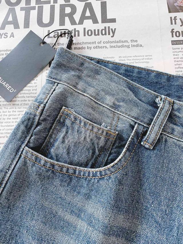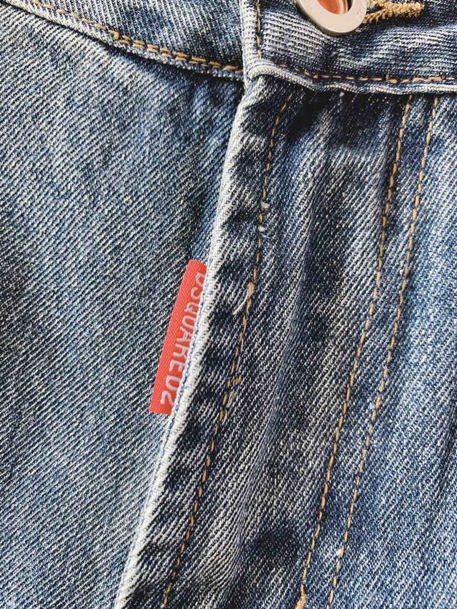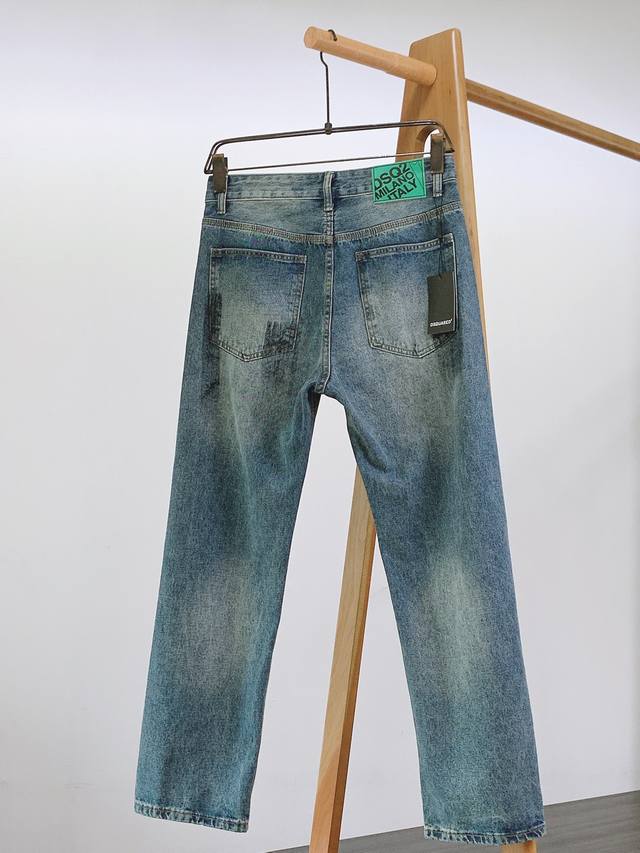 jeans feature a hand-splashed ink design, with irregular textures that break up the monotony. A red "Dsquared*2" label on the waistband and a "DSQ2 Milano Italy" leather patch in black on a green background on the back highlight the brand's heritage. The classic five-pocket silhouette features neat, sleek stitching. From the fabric to the embellishments, every detail embodies the Italian brand's cool mix-and-match aesthetic, allowing you to effortlessly create your own unique look.