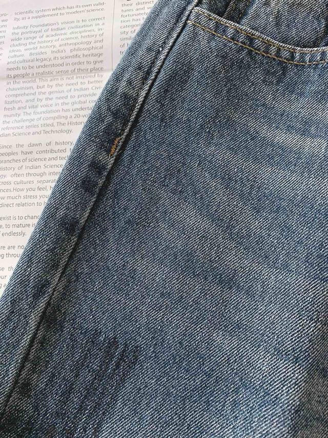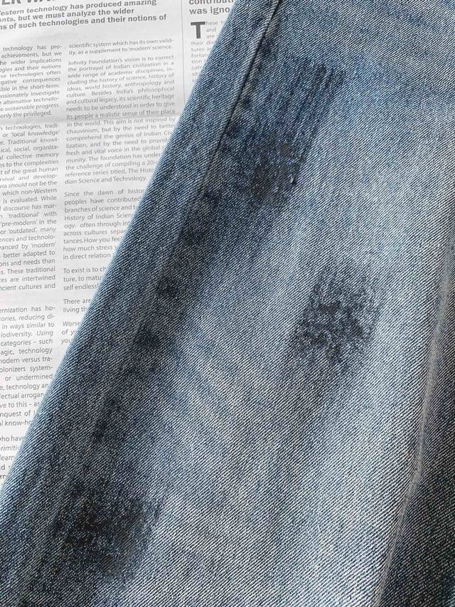 jeans feature splashed ink. Made from denim, these jeans undergo a special wash process to create a naturally distressed blue hue, exuding a retro streetwear vibe. The
