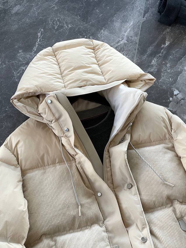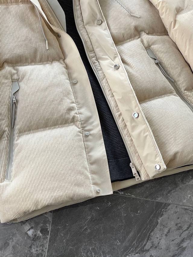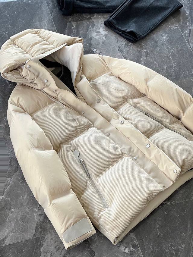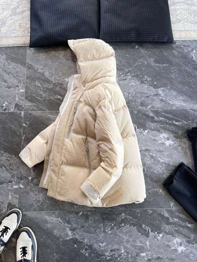 Ez25Fw Autumn/Winter New Corduroy Patchwork Down Jacket, Men's Fashionable Leather-Patched Zipper Pocket Drawstring Hooded Stand Collar Down Jacket! Rarely available from trading company channels, simultaneously released on the official website! Z's new down jacket is not only ingenious in design, but also excels in fabric selection, warmth, detail processing, and cut! It is a practical and stylish down jacket that can meet the needs of different occasions! DDD This down jacket uses vertical striped corduroy fabric, which not only has a unique visual effect, but also a soft and comfortable feel! The 91% cotton composition ensures the fabric's breathability and moisture absorption, while 8% cashmere provides warmth and luxury, and 1% spandex increases the fabric's elasticity, making the overall wear more comfortable! The sleeves, shoulders, and hood sides are patched with high-density nylon fabric, which is not only wear-resistant and durable, but also has good windproof and waterproof performance! The contrasting combination of two fabrics creates a striking look while maintaining a stylish aesthetic. The DDD jacket is filled with European standard 90% goose down, which offers superior warmth compared to duck down. The 90% down content ensures high loft and excellent heat retention. Furthermore, a high-end heat-sealing process creates compartmentalized sections, making the jacket lighter, improving warmth, and preventing down shifting and clumping. The jacket features heat-sealed leather zippered pockets that are both practical and aesthetically pleasing, while also increasing durability. Embossed leather loops with the brand logo on the cuffs not only serve a decorative purpose but also enhance wind protection. Zipper hardware engraved with the brand name adds a touch of luxury and elevates the overall quality. The fleece lining inside the collar enhances comfort and warmth, while the drawstring hem provides excellent wind protection and easy adjustment. This relaxed, straight-leg cut is suitable for men of all ages, offering both comfort and style. It's perfect for everyday wear or outdoor activities! Due to the taped seam, it's dry clean only; do not machine wash! Sizes: S-XL Style Number: Al238291 S: Shoulder 51cm - Chest 122cm - Length 75cm - Sleeve 61cm M: Shoulder 52cm - Chest 126cm - Length 77cm - Sleeve 62cm L: Shoulder 53cm - Chest 130cm - Length 79cm - Sleeve 63cm XL: Shoulder 54cm - Chest 134cm - Length 81cm - Sleeve 64cm Size Recommendation: Relaxed fit. For men 174cm tall and weighing 140kg, size M fits well! For men weighing under 135 lbs, choose size S; 135-152 lbs, choose size M; 152-170 lbs, choose size L; and 170-190 lbs, choose size XL !
