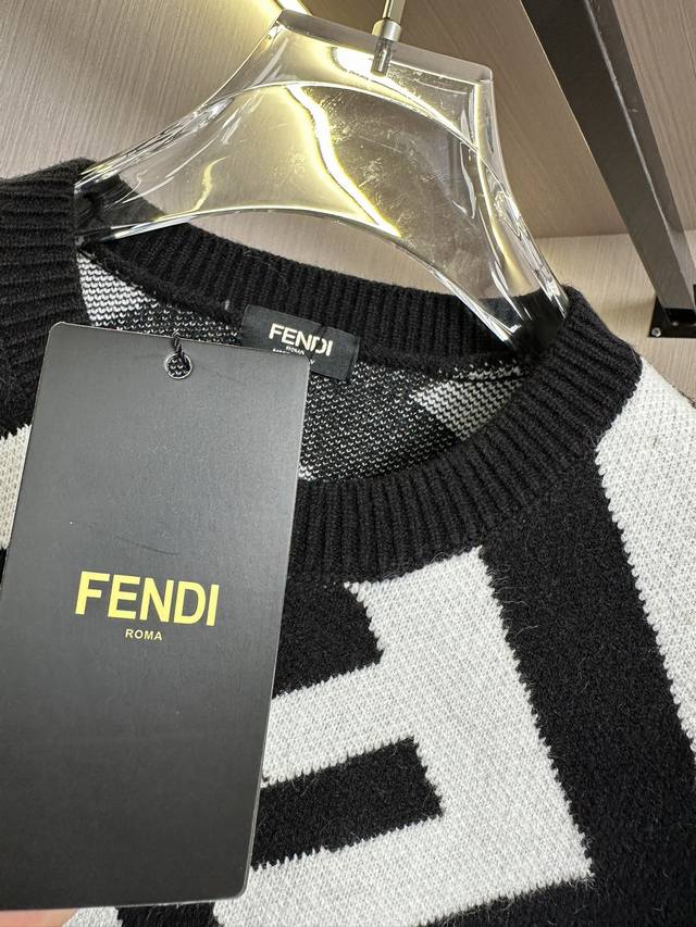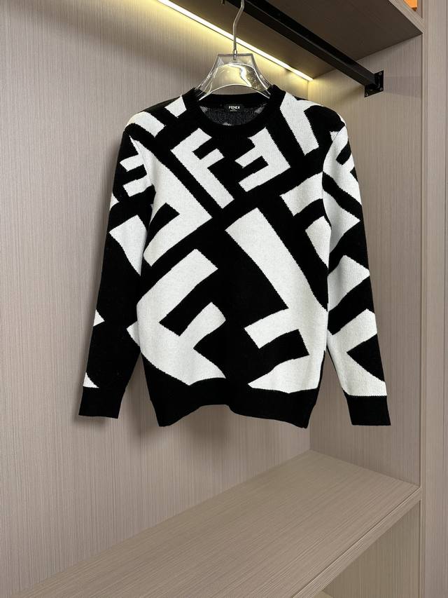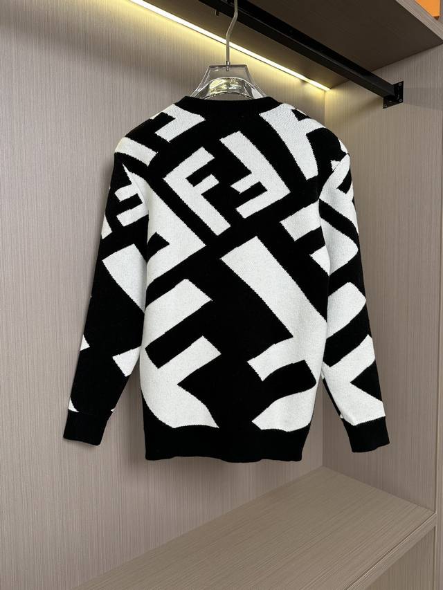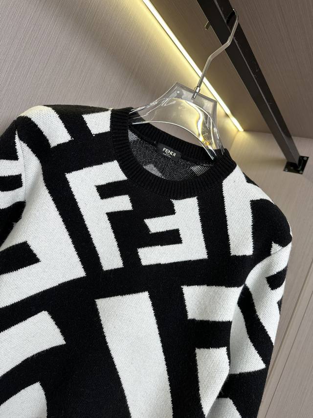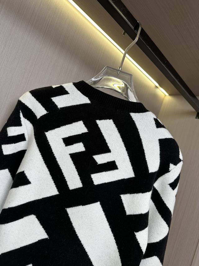 Fd Fenjia 2025Fw autumn and winter latest series crew neck sweater, in perfect condition! All-over jacquard logo double F branding, line color matching trendy fashion single piece soft feel, non-snap
