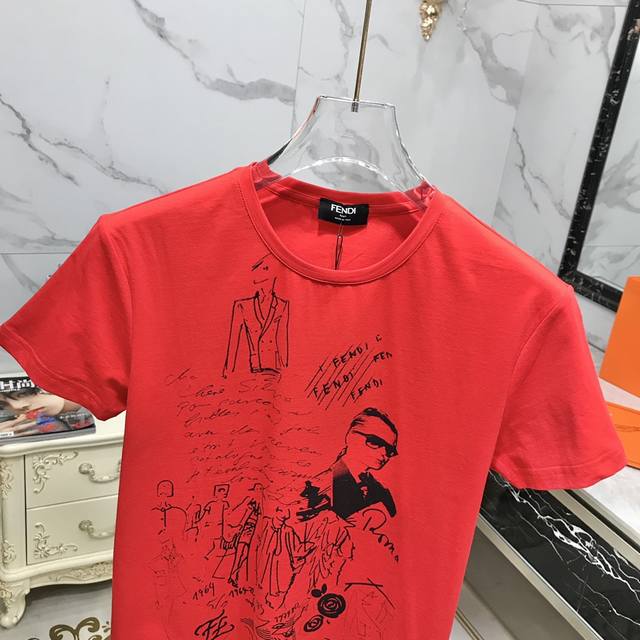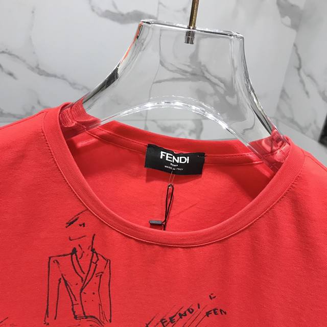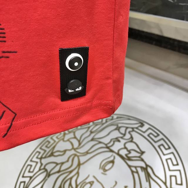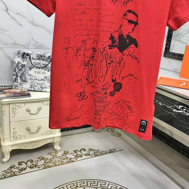 Fen*Di Ad003 Fenjia Ss window display short-sleeved T-shirt with hot-stamped pattern on the chest, brand letter Lo*Go design, small monster eye button elements at the waist, long-staple cotton fabric for a comfortable feel, breathable and cool upper body effect. Size: M-3Xl
