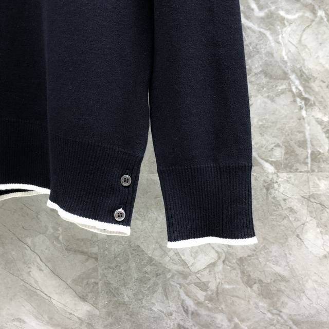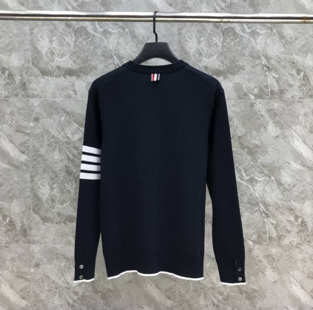 / Four-bar jacquard submarine crew neck sweater with white edges Size: 1-4 Color: