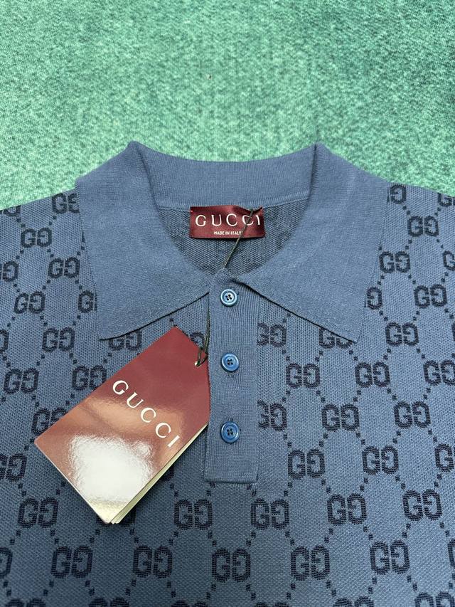 G brand 25Ss new collared T-shirt crafted from Gg knitted cotton jacquard fabric