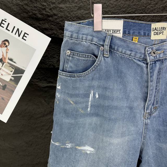 Gallery Dept. 2025 new knife-cut, hand-painted, couple-style washed loose denim shorts