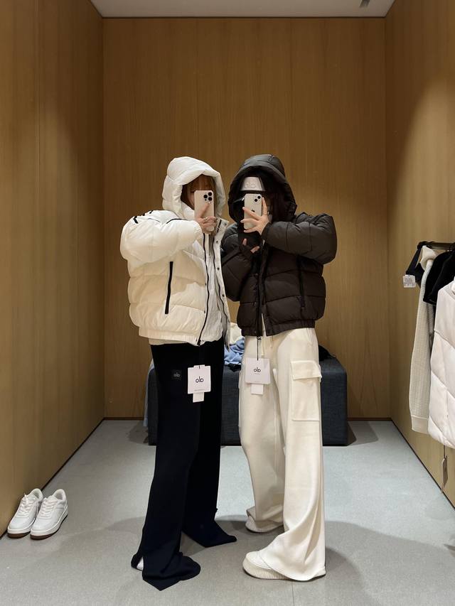 Alo Yoga Aspen Love puffer Jacket striped webbing hooded gold label A cotton detachable hood waterproof short jacket for women