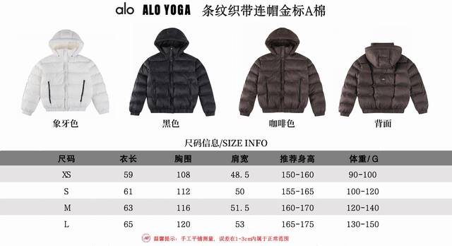 Alo Yoga Aspen Love puffer Jacket striped webbing hooded gold label A cotton detachable hood waterproof short jacket for women