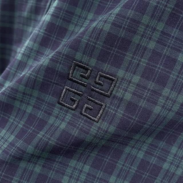 giv~Men's plaid long-sleeved shirt with classic logo embroidery.