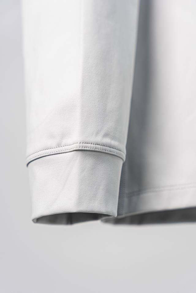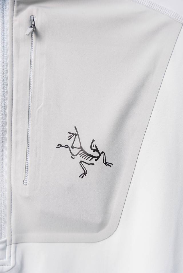 Gray and white Arcteryx Arc'teryx Rho series solid color printed logo half zip l