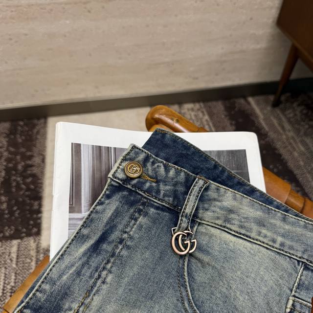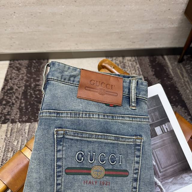 Gu25S Spring/Autumn Men's Straight Jeans. Made of cotton denim, they're soft yet firm, with a dry, resilient feel. The classic, iconic embossed logo adds a touch of sophistication. All indicators are top-notch, naturally giving you an excellent fit! Sizes: 29-38