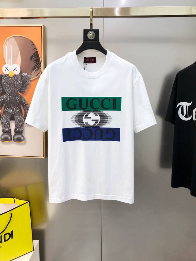 Gu25Ss Spring and Summer New Environmentally Friendly Knitted Cotton Round Neck Short Tee, Unisex Double Dragon Gg Lucky Cloud Pattern Printed Casual Short Sleeve T-shirt! The trading company channel is rare, leading the official website for sale! In this new year, let us take Lucky Cloud as wings and Double Dragon as soul, and welcome the arrival of good luck together!