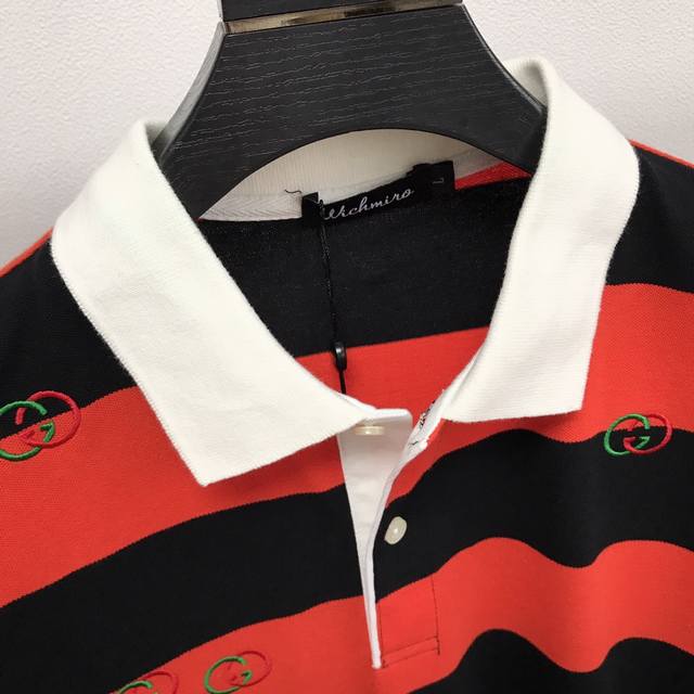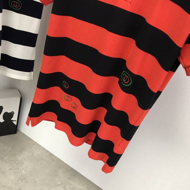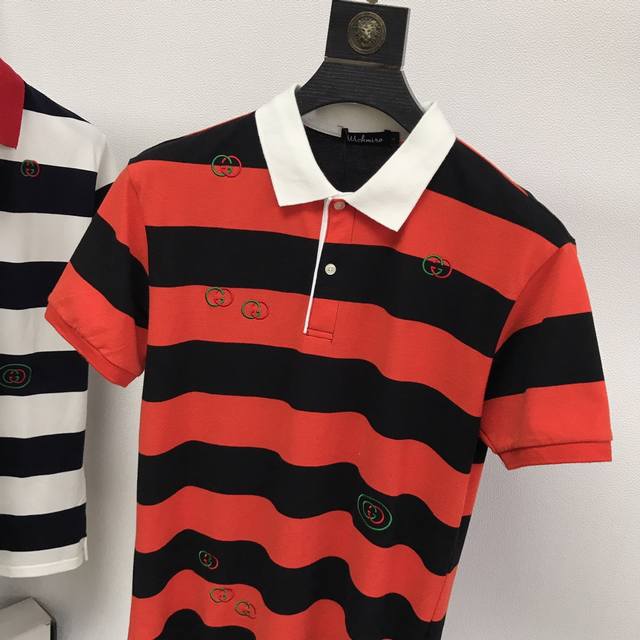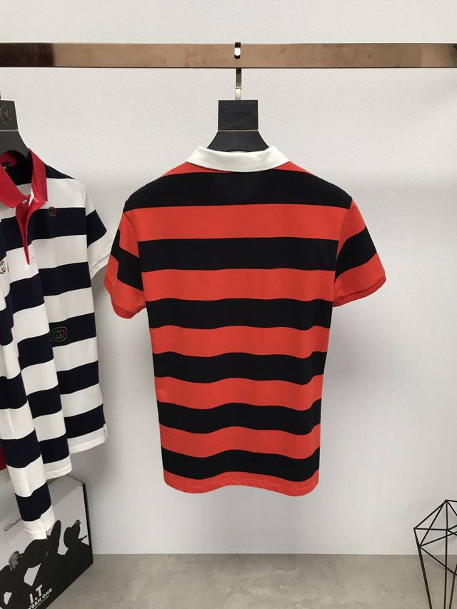 Guc 20Ss Spring new counter striped series casual style counter sales 6800 customers available for customization. Made of Indian fine silk cotton fabric, embroidered double G jacquard stripe design embellishment version of the version is super flattering and the upper version effect is great! Counter size: M-2Xl, suitable for 120-170 catties B10