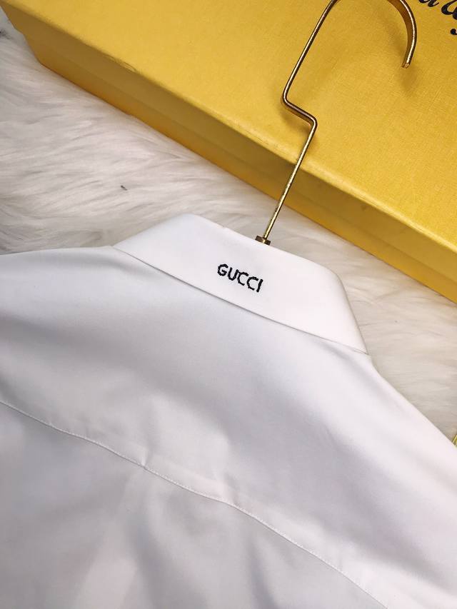 Gu*Ci G's latest style with bee embroidery on the collar. Unique design makes th