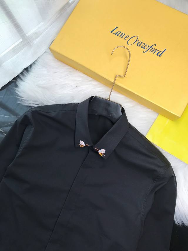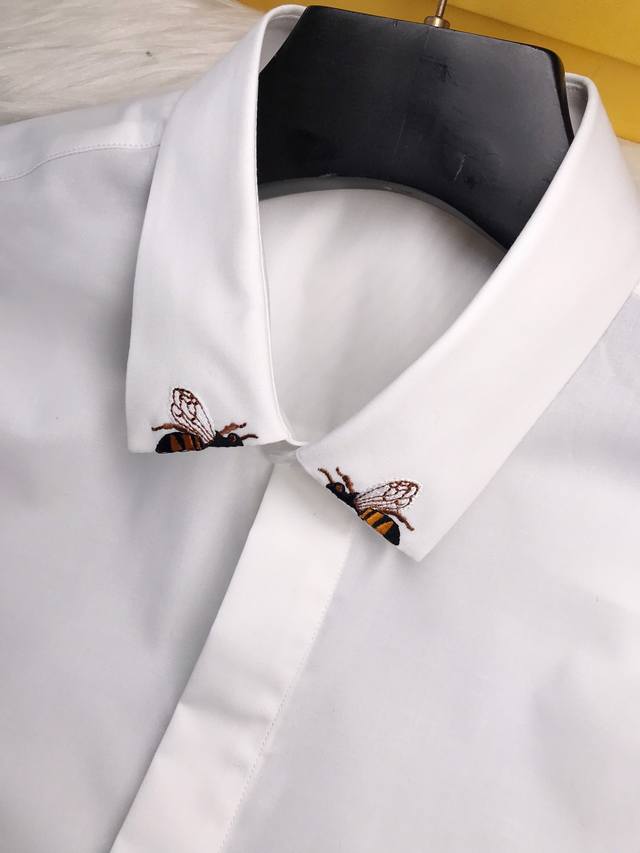 Gu*Ci G's latest style with bee embroidery on the collar. Unique design makes the upper body look very handsome. Size: M-3Xl. The last one can wear 175 catties