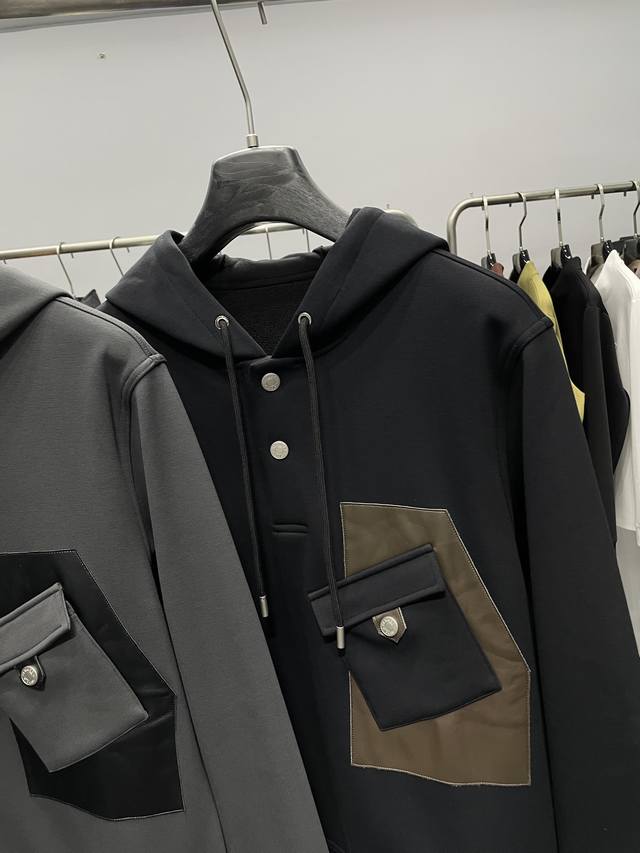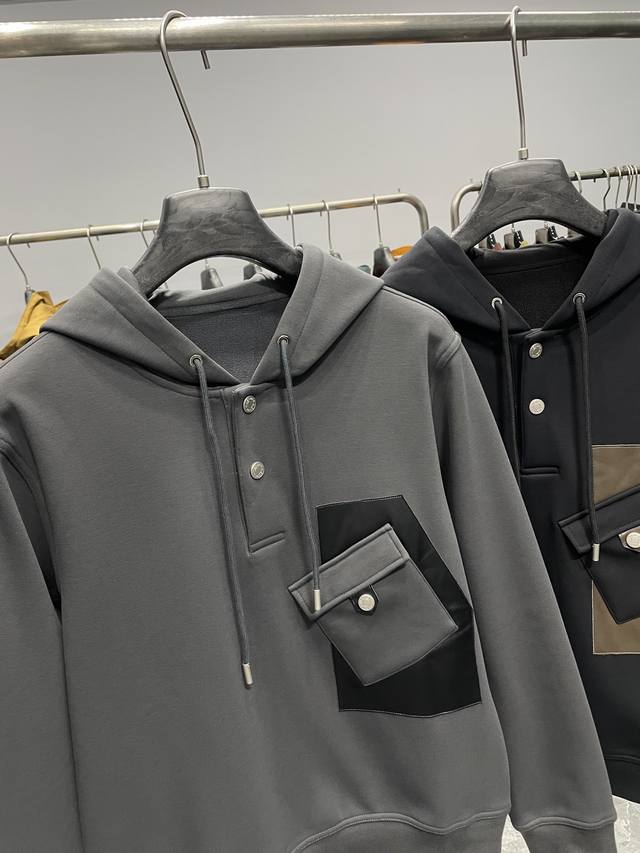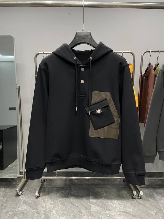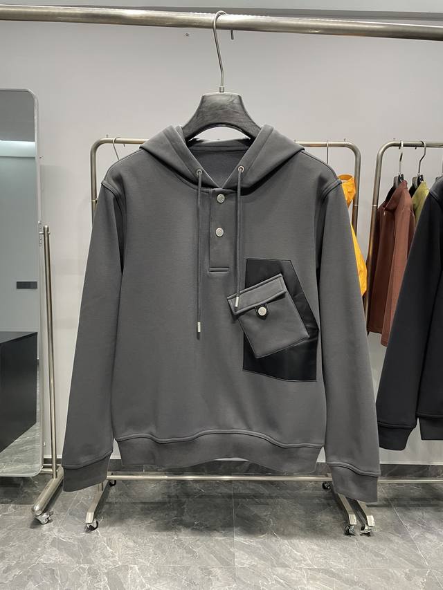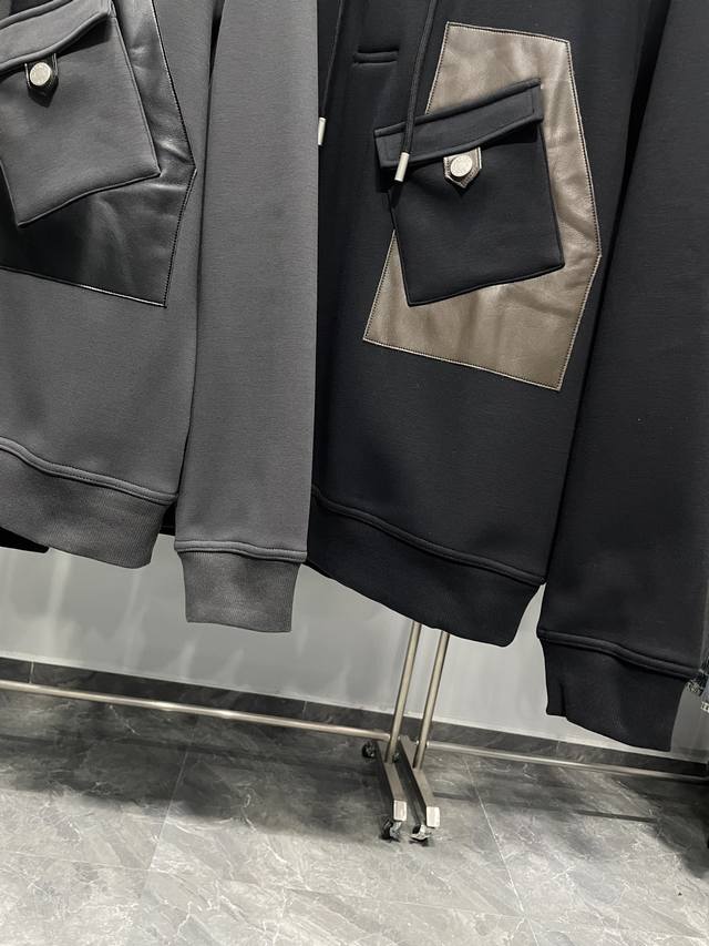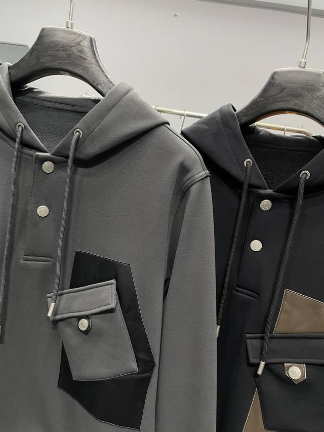 Her25Fw's new fall/winter high-quality pure cotton, fleece, and thickened hooded sweatshirt. This unisex, casual pullover with genuine leather pockets is available for both men and women! Available only through trading channels and on the official website! This limited edition fall/winter 25 sweatshirt features a neutral style that blurs gender lines!