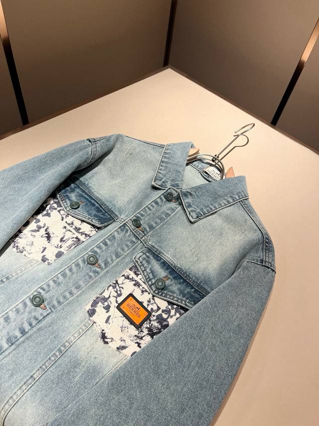 Her*Mes 2025 Autumn/Winter New Denim Jacket, a newly upgraded versatile basic style, understated luxury, a choice of quality! Crafted from select high-quality denim fabric, it boasts excellent moisture absorption, comfort, and breathability, allowing for a relaxed and carefree wearing experience. It features a strong vertical drape and an artistic denim design! The jacket features a metal logo pattern design! Meticulous craftsmanship, highly recognizable, and a classic, perfect cut with precise tailoring. Its simple and sophisticated style allows it to showcase fashionable charm in everyday casual life. Sizes: M-4XL