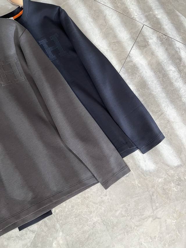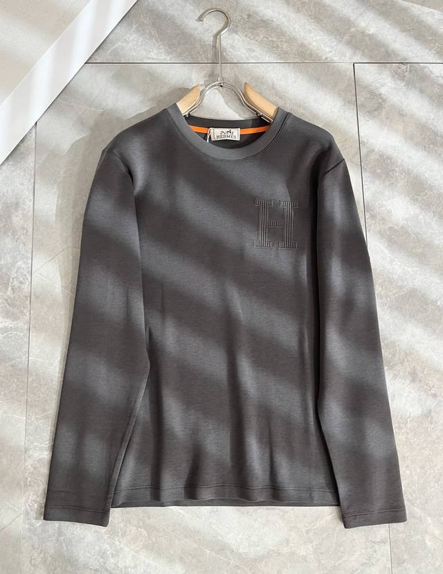 Her*Mes 2025 Autumn/Winter New Men's Long-Sleeve Base Layer T-Shirt, a newly upgraded versatile basic style, understated luxury, a choice of quality! Made from carefully selected high-quality pure cotton fabric, it offers a relaxed and comfortable wearing experience with excellent vertical performance. The highly artistic and distinctive logo embroidery design is meticulously crafted and highly recognizable, showcasing the brand's new micro-logo culture! The classic and perfect fit design is precisely tailored. Its simple and elegant style allows it to showcase fashionable charm in everyday casual life. Sizes: M-3XL