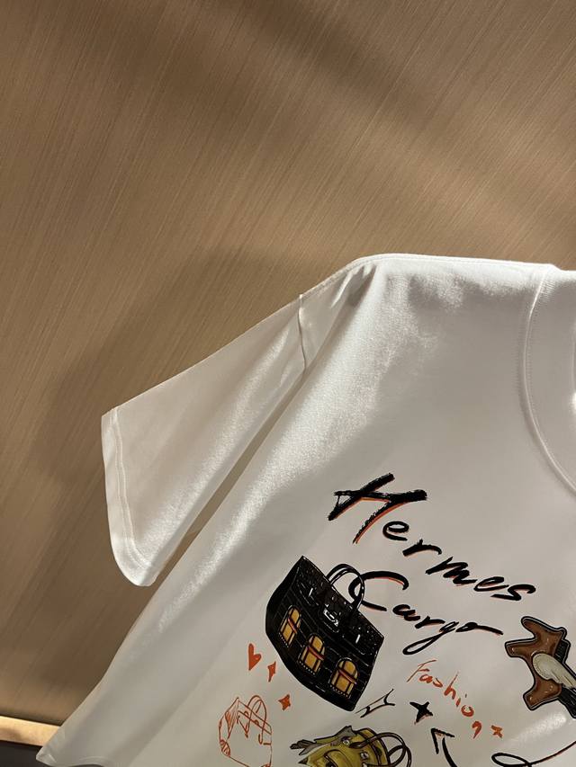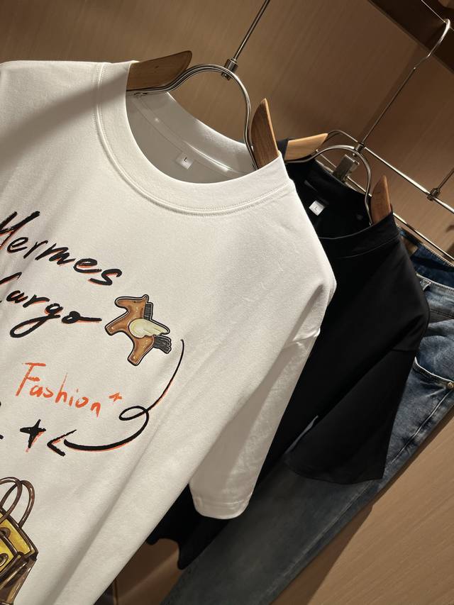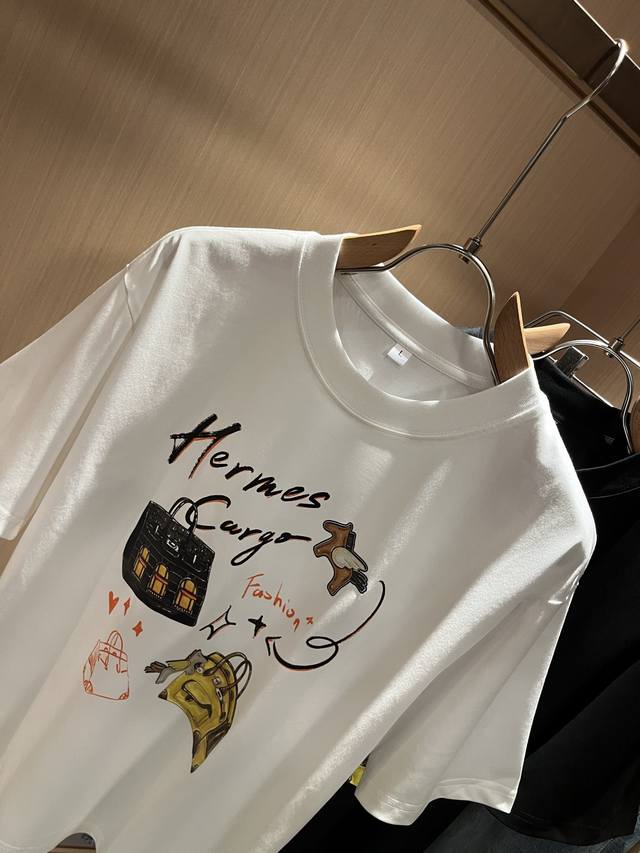 Her*Mes' 2025 Spring/Summer new unisex short-sleeved T-shirts are a newly upgraded and versatile basic style, understated luxury, and a classy choice! Made from premium, hand-picked cotton fabrics, they offer a relaxed and comfortable wearing experience, boasting exceptional vertical performance and a strong sense of artistry. The iconic logo print and hot-drilling design are meticulously crafted, highly recognizable, and showcase the brand's new micro-logo culture! The classic, perfectly shaped design is precisely tailored. The minimalist and elegant style complements the fashionable charm of everyday leisure life. Sizes: M-4Xl