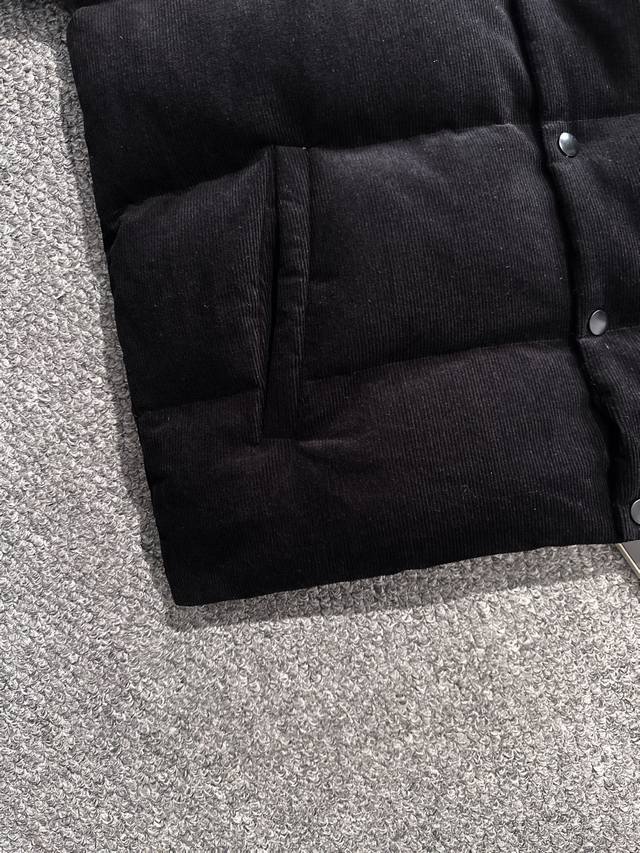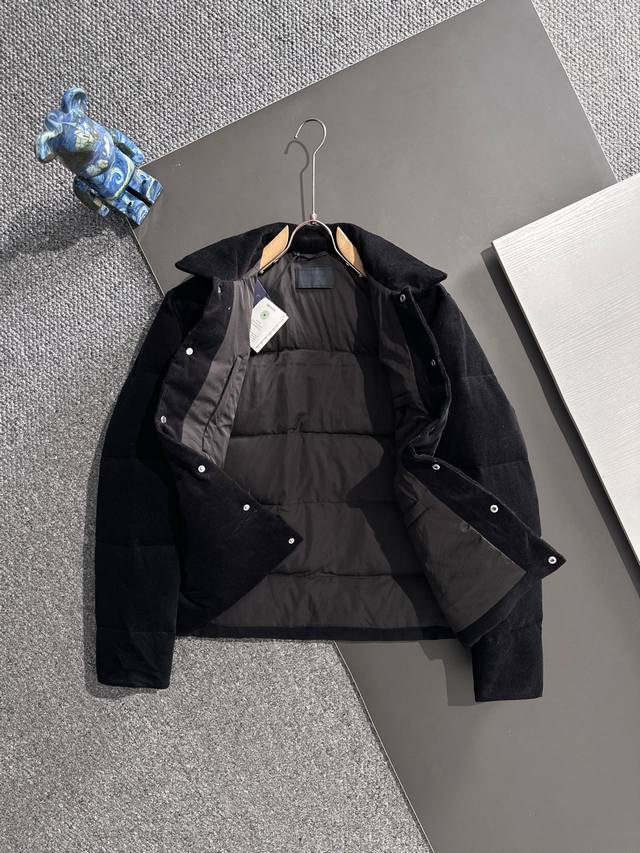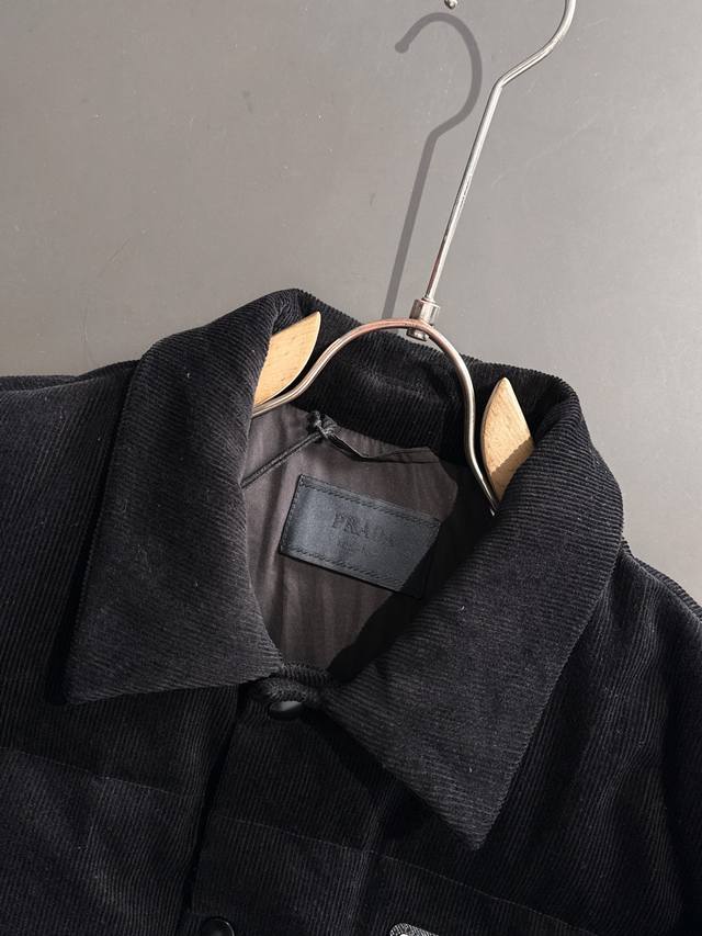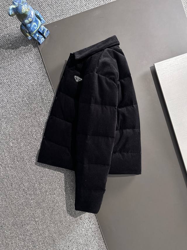 High-quality Prada 25Fw (Note the details) This Prada 25Fw jacket features a genuine leather triangle logo and a smooth, non-rough finish, just like the original. It has three interior pockets. All details are identical to the original. Comes with a dedicated dust bag. Please look for the details if it's a high-quality version. This is a new autumn/winter corduroy stand-collar down jacket, unisex, with a classic triangle logo. The corduroy fabric is incredibly soft and gentle, making it a highlight of autumn/winter outfits. A must-have for both men and women, this timeless classic is a perfect choice for everyday wear. This down jacket is made from 100% custom-woven corduroy, featuring a textured surface with a retro, vintage feel reminiscent of the 70s, giving it a relaxed and effortless look. The inner lining is made of fine, smooth fibers, filled with 90% white goose down. The down is plentiful, without any clumps or stems, providing a full and soft texture. It instantly springs back when pressed, effectively locking in warmth and providing the ultimate in comfort! The basic, classic stand-up collar vest design is simple and clean, easily creating a stylish and sophisticated casual look! Sizes: S-XL