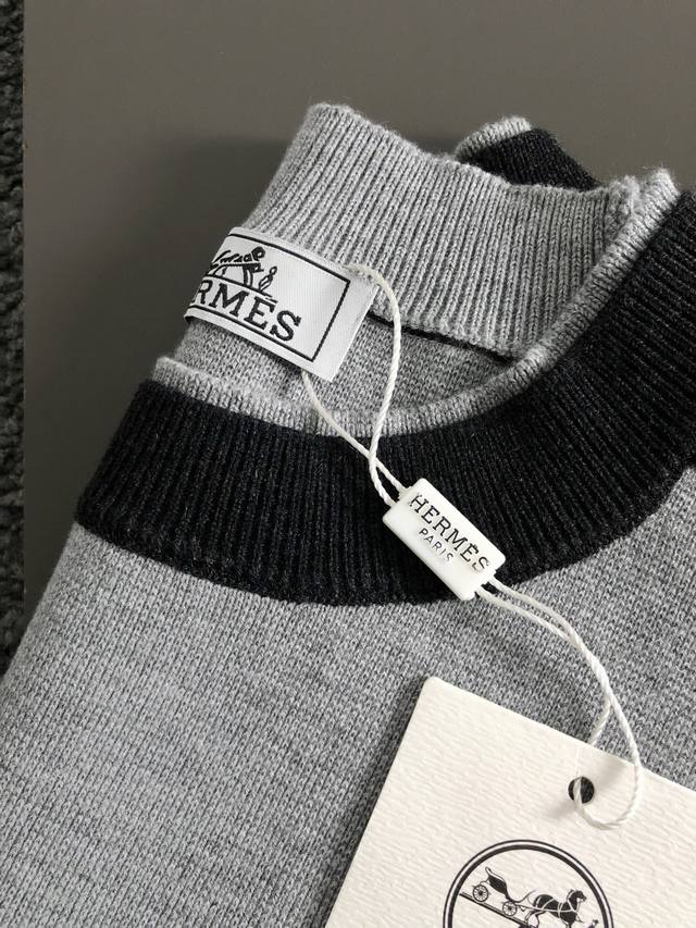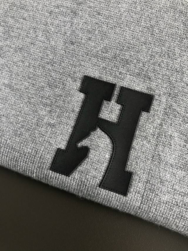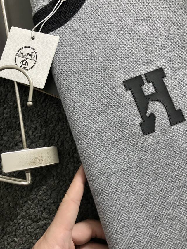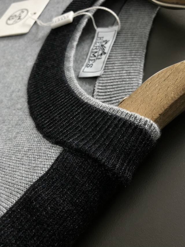 Hms* Fitted Size M-Xxxl Ddd 2025 Autumn/Winter Crew Neck Wool Sweater. The main color scheme features a black and gray color block design with a double-layered neckline. It incorporates a three-dimensional H-letter patchwork element, breaking the monotony of traditional wool and showcasing individuality and a free-spirited style. The three-dimensional cut fits the body well, with a clean and stylish design that easily elongates the leg line, creating a casual and carefree look. The high-quality fabric is comfortable and warm, combining warmth and comfort, suitable for everyday wear or light outdoor activities. The detailed triangular jacquard embellishment on the back adds a touch of fashion. Whether paired with a casual look of a T-shirt and jeans or a layered mix-and-match style, it's easy to pull off, making it an indispensable fashion item for the autumn/winter transition season. Ddd Available in Black and White DDD
